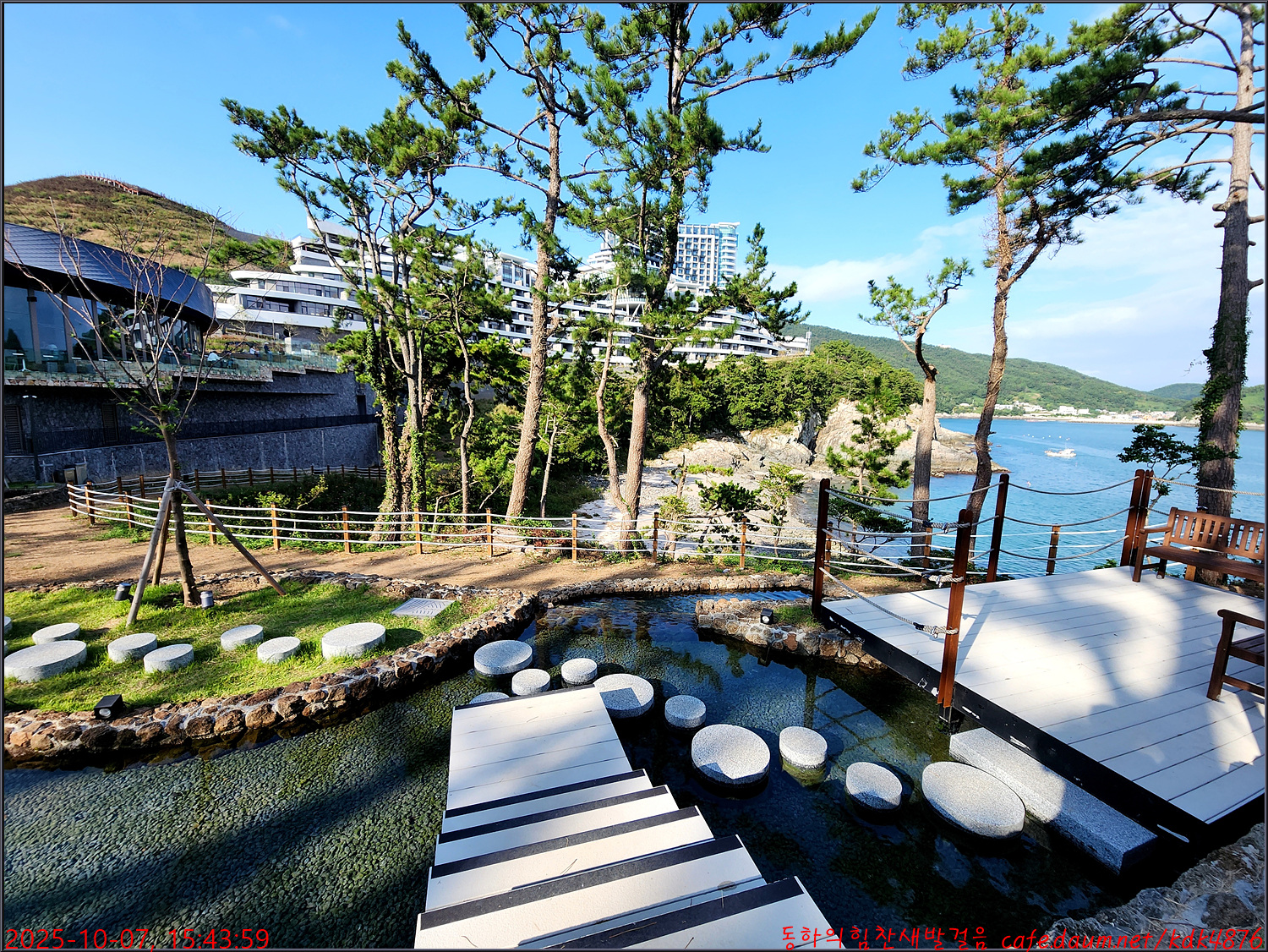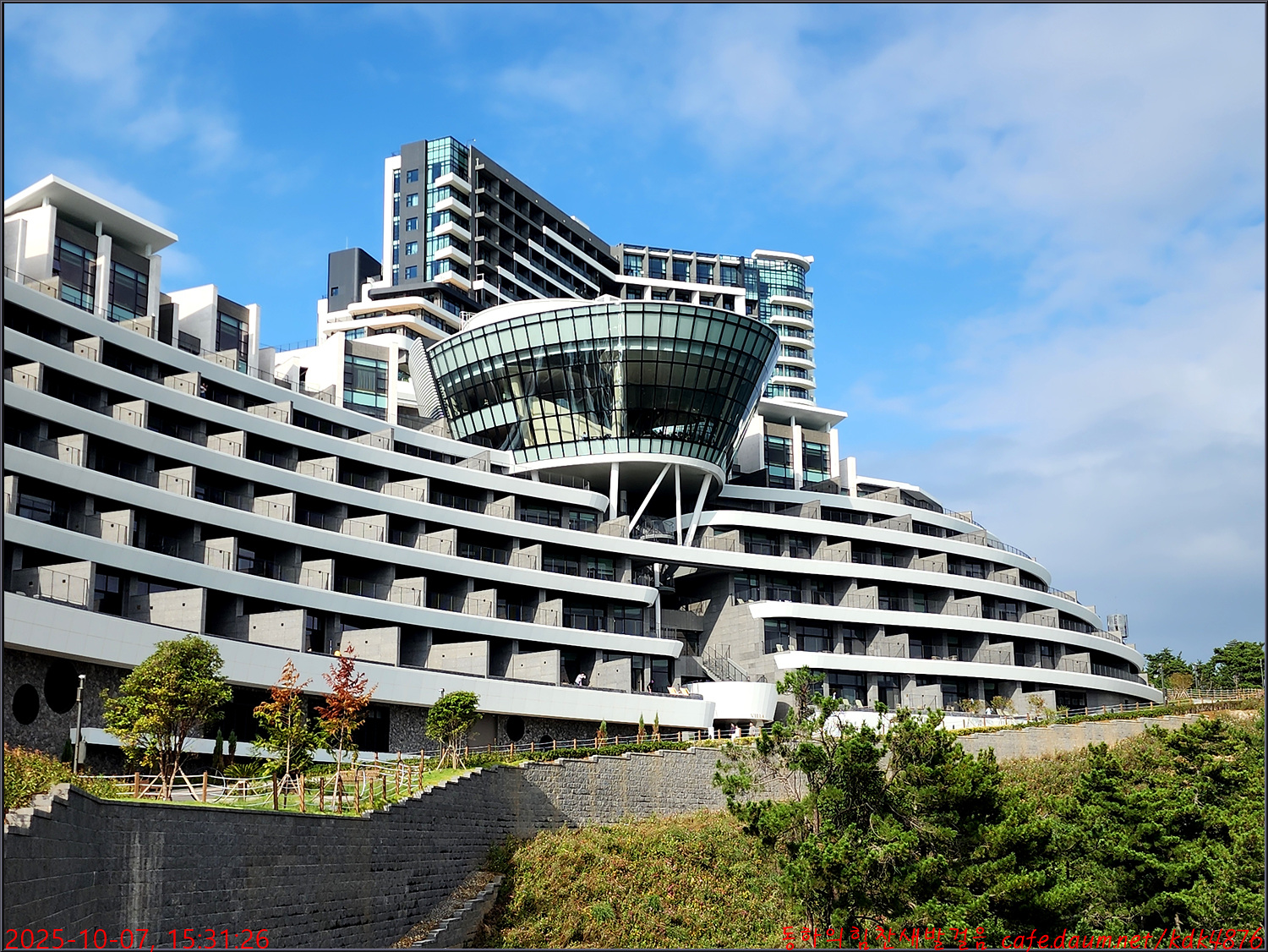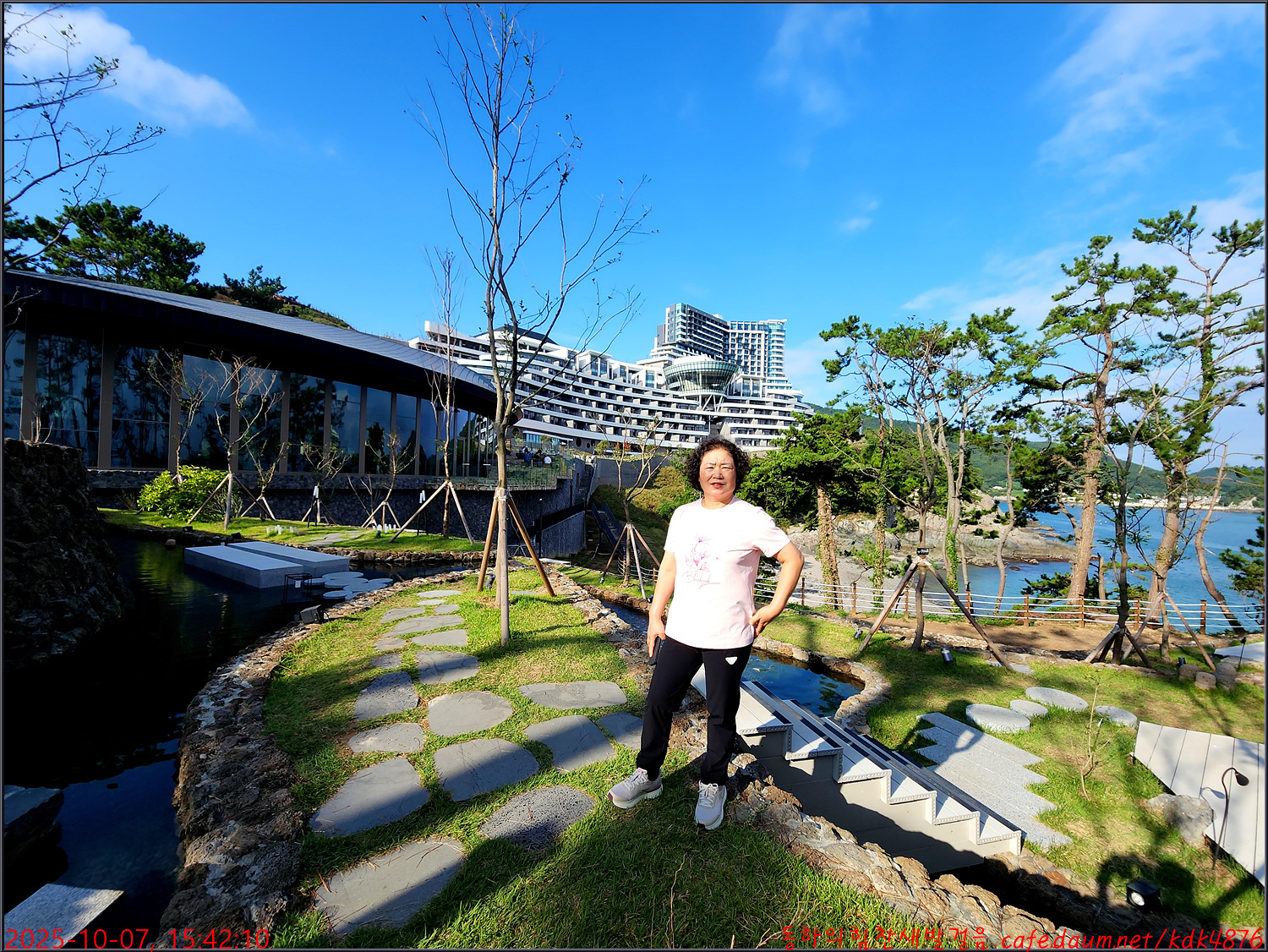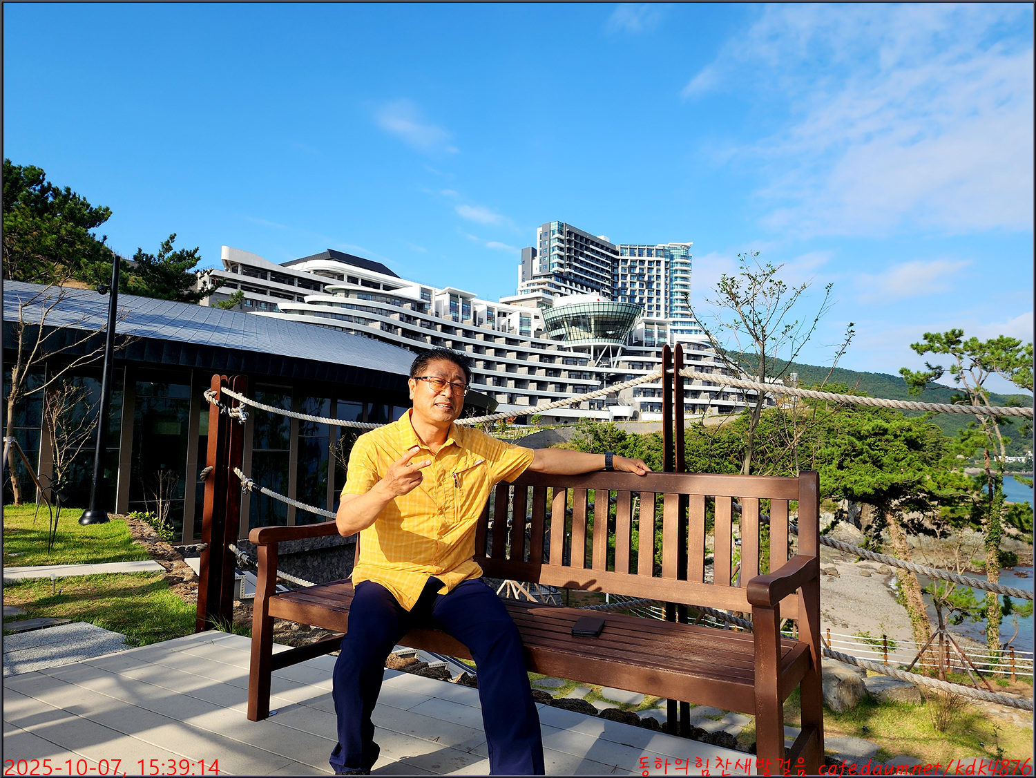 추석연휴 내내 날마다 비가 오락가락한다. 오늘은 해가 나오려나? 모처럼 만에 해를 보니 기분이 좋아지고, 남해 망운산을 향하여 드라이브를 나선다. 그런데 이게 또 웬일? 남해 노량대교를 건너니 부슬부슬 비가 내리고, 망운산 정상부는 구름이 잔뜩 끼었다~ㅠㅠ. 망운산은 포기하고 그냥 한 바퀴 돌아보자~ 하고 가는데 '쏠비치남해' 이정표가 보인다. 남해군의 맨 남쪽 끝자락 미조면에 새로이 들어선 '쏠비치남해'는 지난 2025년 7월에 개장을 하여 인기몰이를 하고 있단다. 위쪽에 자리한 호텔, 아래쪽에 자리한 풀빌라가 아름다운 해안과 잘 어울리도록 웅장함을 곁들여 참으로 멋지게 건설되었다. 호텔로비에서 이어지는 풀빌라의 옥상에는 "Permaent Gift_camellia" 란 작품이 있어, '영원한 선물 동백, 영원한 사랑의 선물'로 소개되어 있다. 풀빌라를 통과하여 해변으로 나서니 '비스트로게미'란 건물과 해변 정원이 꾸며져 있어 여유로운 발걸음으로 천천히 산책을 이어간다. 해변정원에서 바라보는 비스트로게미, 풀빌라와 호텔 건물은 참으로 조화스러운 아름다움을 자랑한다. '솔비치남해'의 웅장함과 아름다움을 감상하며 한바퀴 산책을 마무리한다.