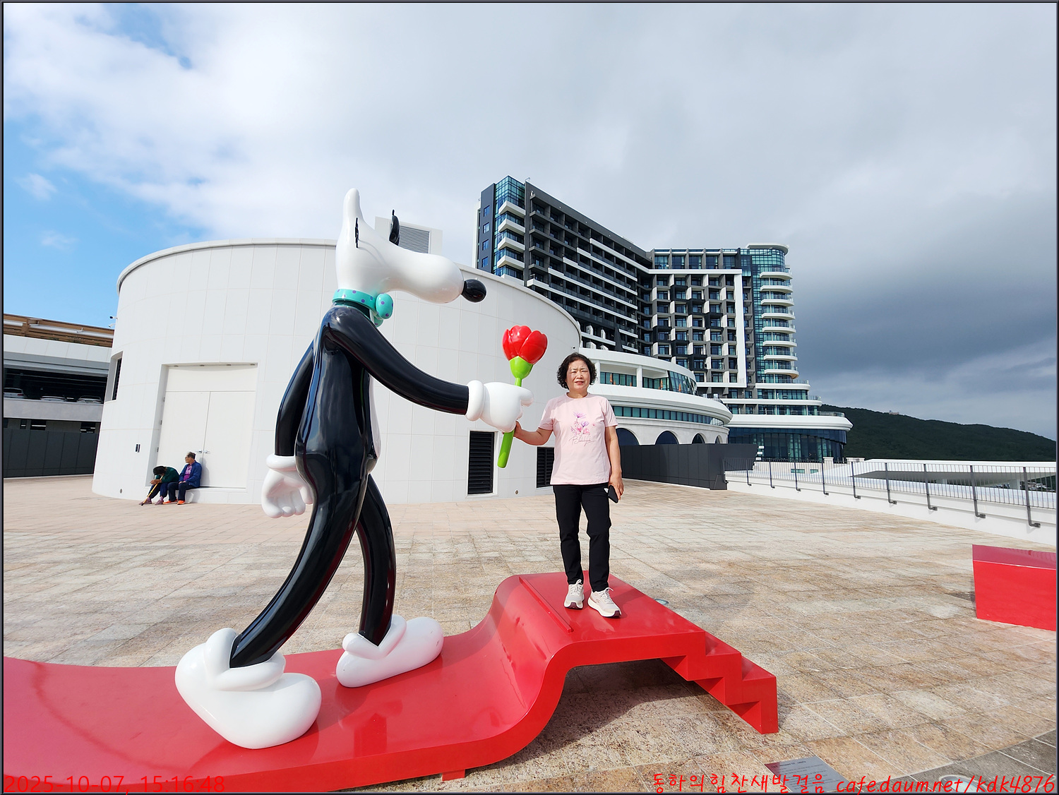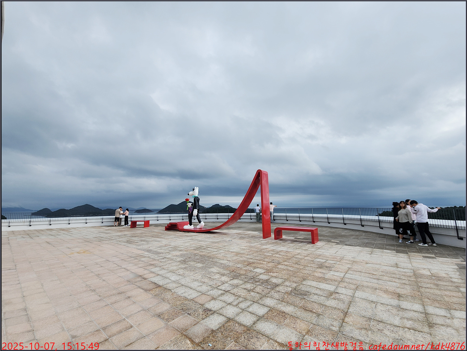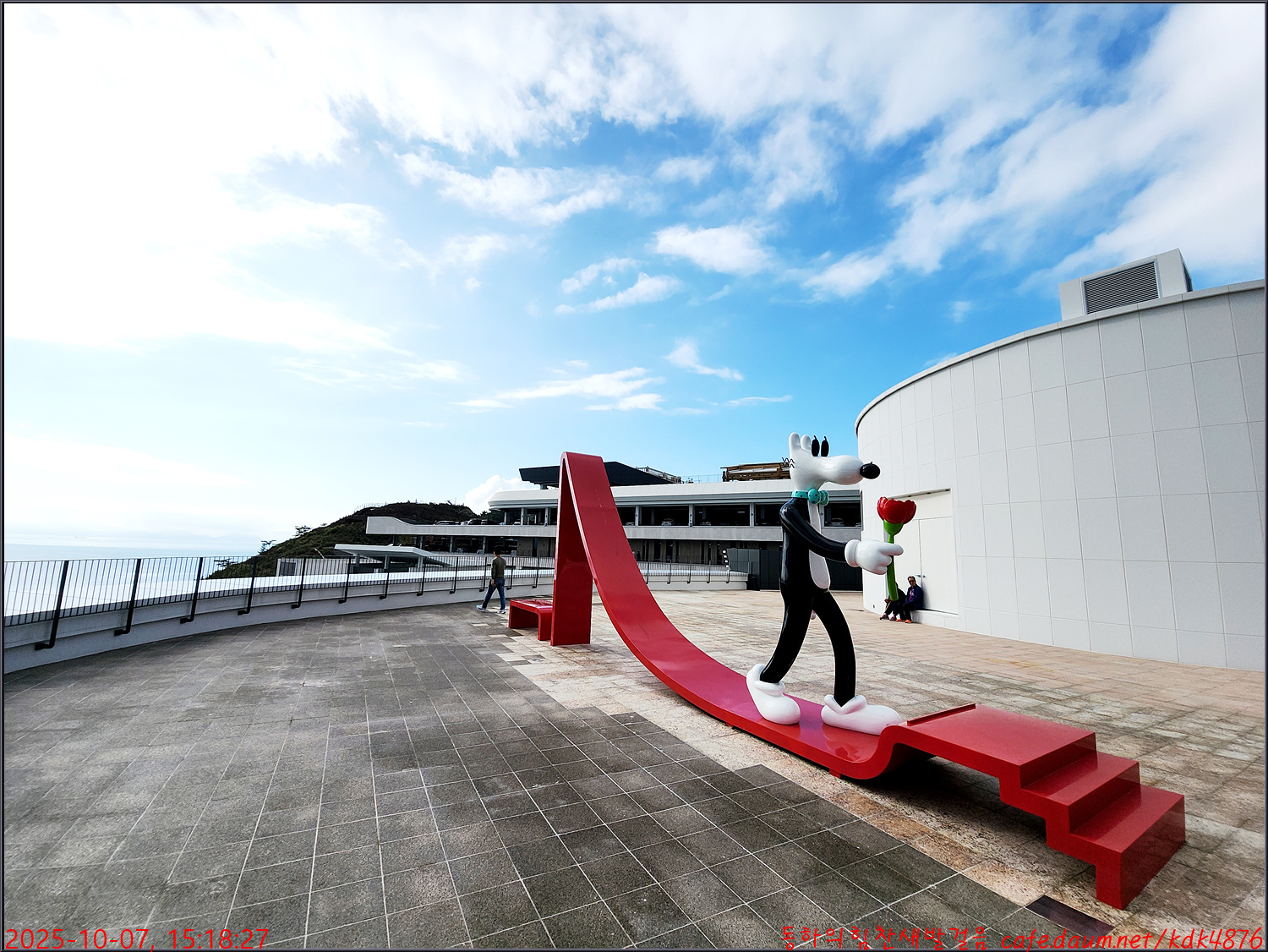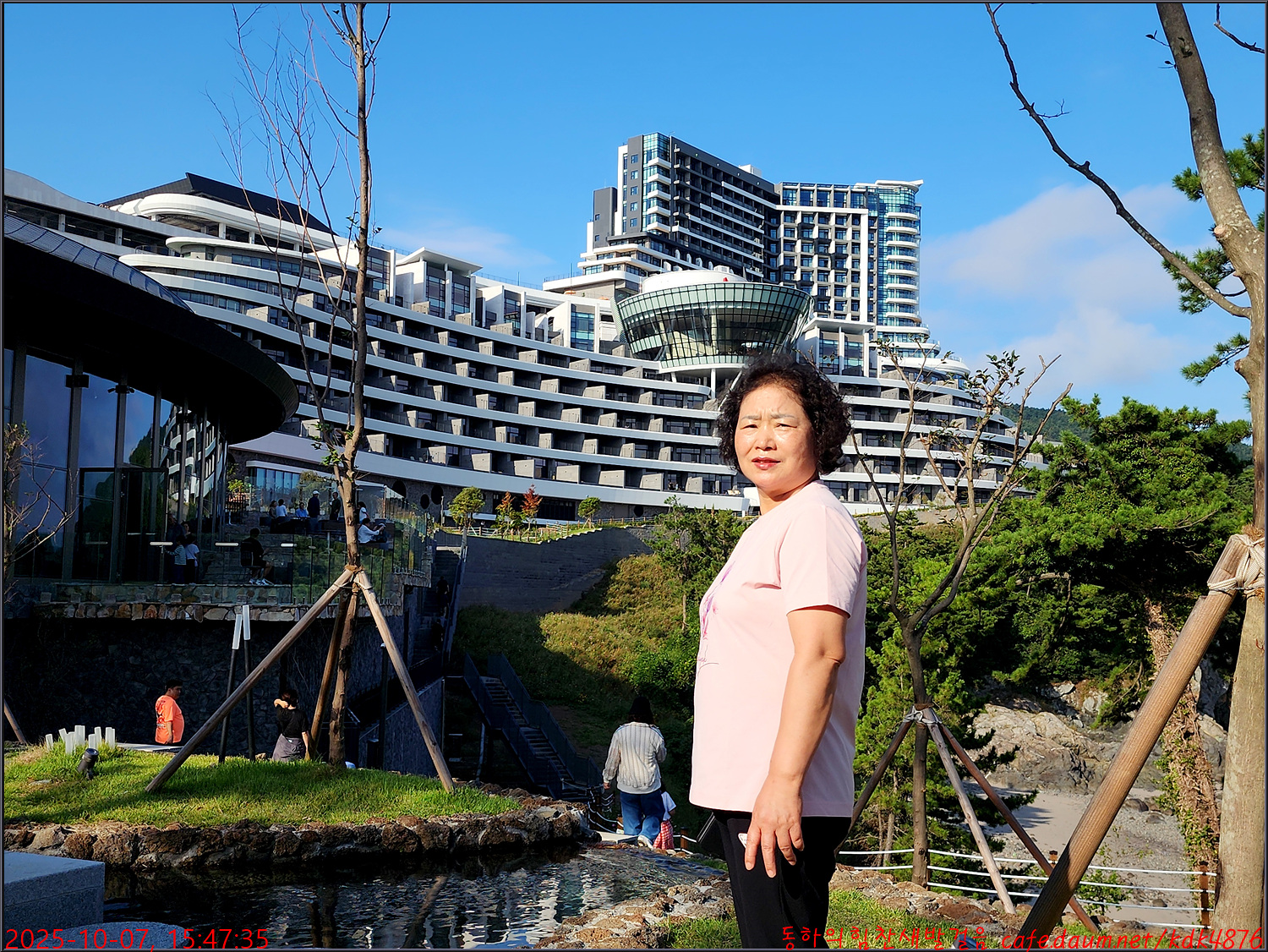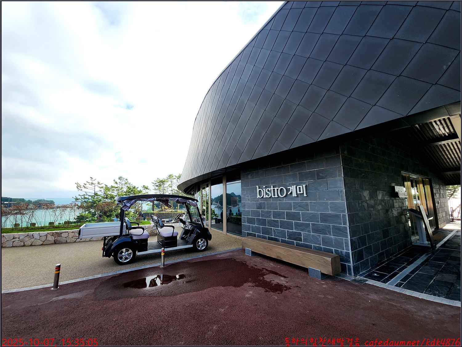 추석연휴 내내 날마다 비가 오락가락한다. 오늘은 해가 나오려나? 모처럼 만에 해를 보니 기분이 좋아지고, 남해 망운산을 향하여 드라이브를 나선다. 그런데 이게 또 웬일? 남해 노량대교를 건너니 부슬부슬 비가 내리고, 망운산 정상부는 구름이 잔뜩 끼었다~ㅠㅠ. 망운산은 포기하고 그냥 한 바퀴 돌아보자~ 하고 가는데 '쏠비치남해' 이정표가 보인다. 남해군의 맨 남쪽 끝자락 미조면에 새로이 들어선 '쏠비치남해'는 지난 2025년 7월에 개장을 하여 인기몰이를 하고 있단다. 위쪽에 자리한 호텔, 아래쪽에 자리한 풀빌라가 아름다운 해안과 잘 어울리도록 웅장함을 곁들여 참으로 멋지게 건설되었다. 호텔로비에서 이어지는 풀빌라의 옥상에는 "Permaent Gift_camellia" 란 작품이 있어, '영원한 선물 동백, 영원한 사랑의 선물'로 소개되어 있다. 풀빌라를 통과하여 해변으로 나서니 '비스트로게미'란 건물과 해변 정원이 꾸며져 있어 여유로운 발걸음으로 천천히 산책을 이어간다. 해변정원에서 바라보는 비스트로게미, 풀빌라와 호텔 건물은 참으로 조화스러운 아름다움을 자랑한다. '솔비치남해'의 웅장함과 아름다움을 감상하며 한바퀴 산책을 마무리한다.