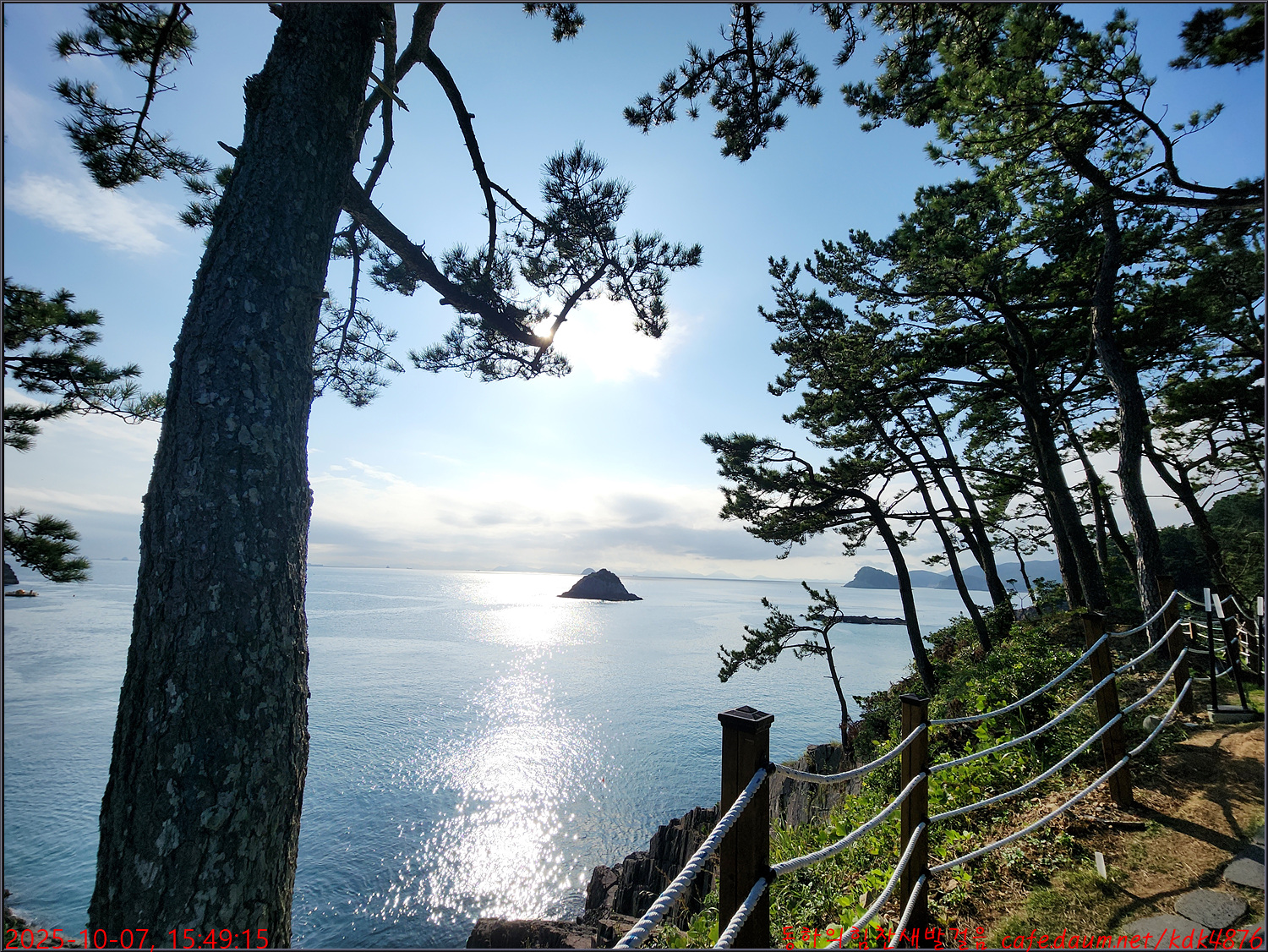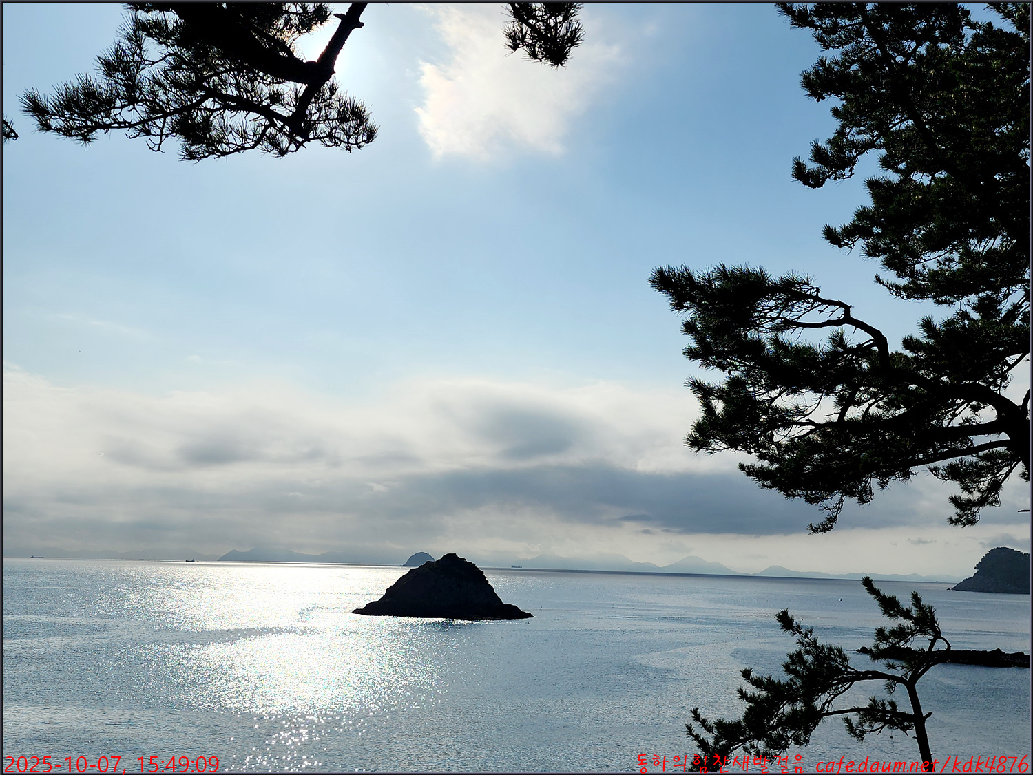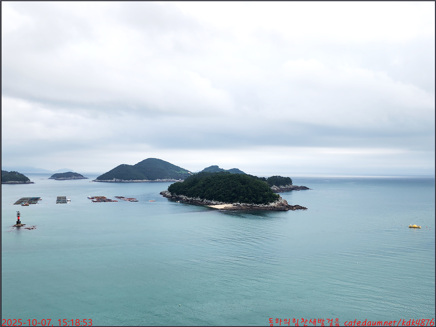 동하도 남해바다의 아름다운 섬들을 배경으로 흔적을 남기고