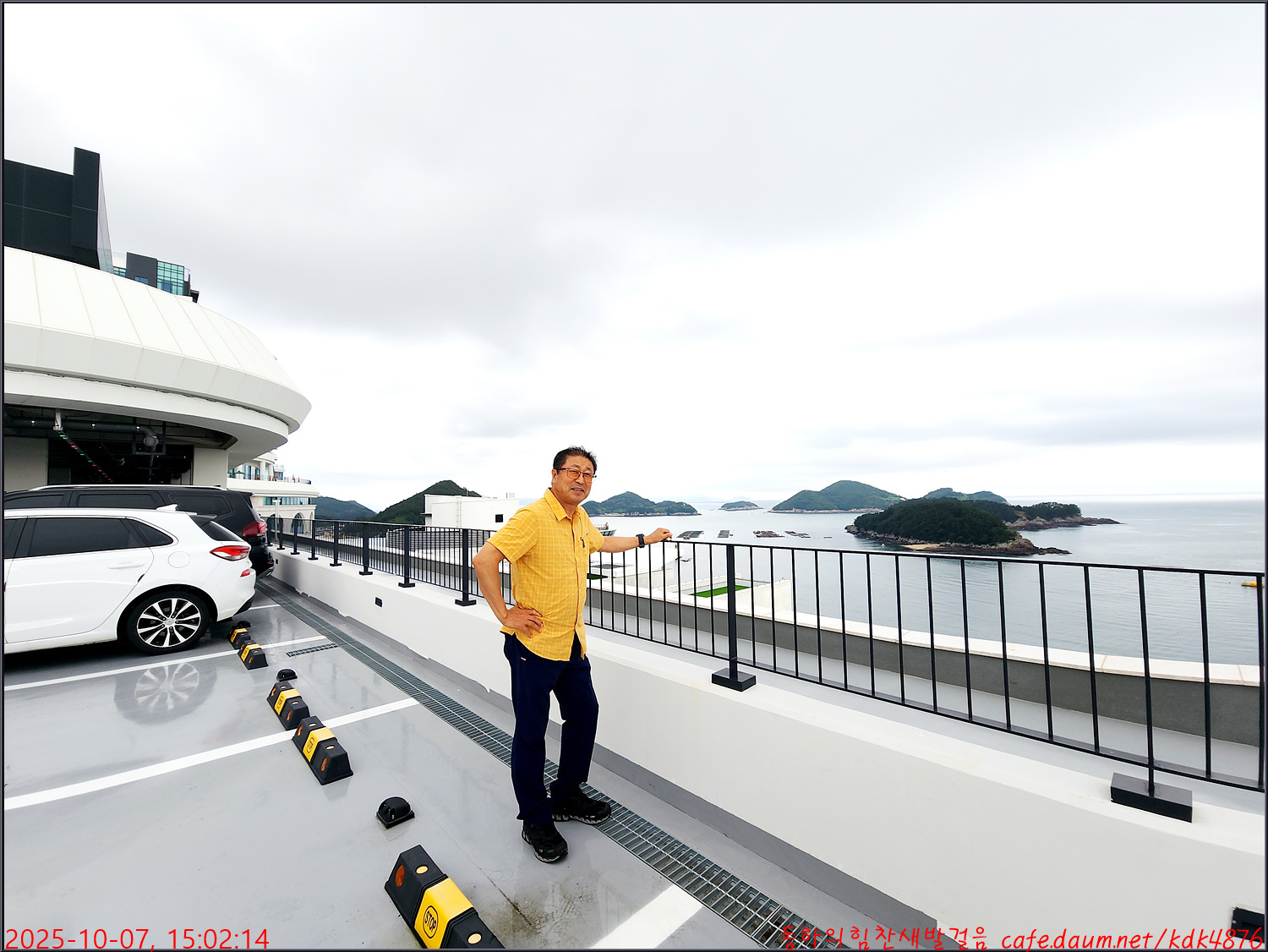 쏠비치남해 호텔 2층 주차장에 주차를 하고 바다를 바라보니