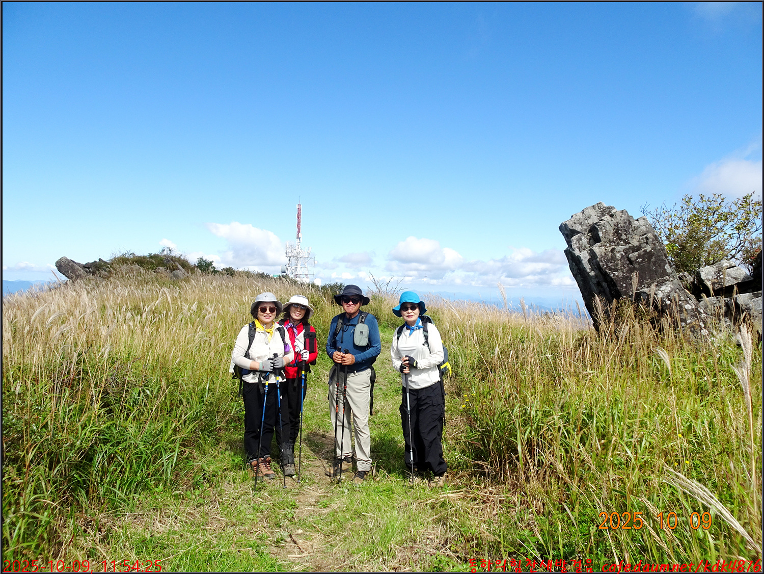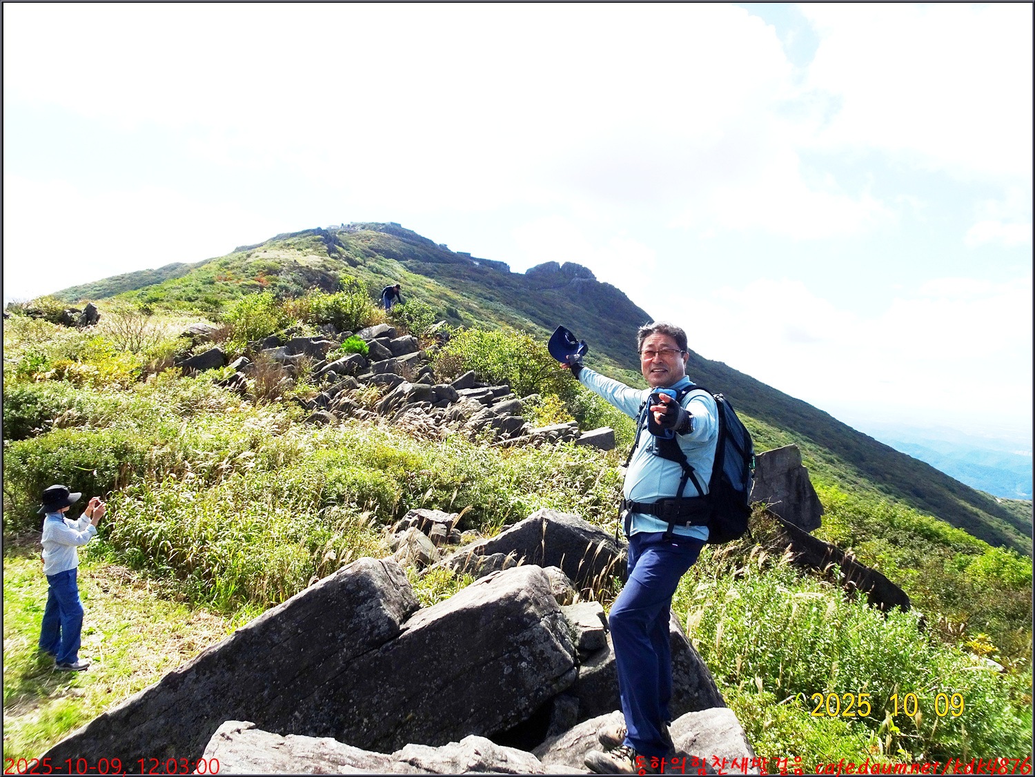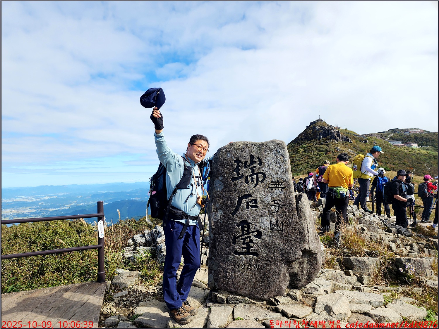 오늘은 추석연휴 마지막 날이자 2025년도 무등산 정상 개방행사의 날, 5명이 함께 무등산 산행을 하게 되고, 동하는 무등산 천왕봉 정상을 3년 만에 다시 찾게 된다. 원효분소에서 무등산옛길을 따라 산행을 시작하고, 부드러운 경사를 따라 물통거리를 통과하여 올라서면 원효계곡시원지의 물소리가 아주 시원스럽다. 목교에 도착하여 월출산을 찾아보니 아주 선명하게 조망되고, 급경사의 돌계단을 따라 서석대전망대에 도착하니 뜻밖에 강기정 광주시장을 만나며, 함께 기념사진을 촬영할 수 있다. 서석대 정상에서 천왕봉을 배경으로 인증을 하고, 천왕봉을 오르는 길 양쪽으로는 은빛물결의 억새꽃이 가을바람에 하늘거리며 신나게 춤을 춘다. 부대후문에서 신분증을 확인한 다음, 인왕봉정상을 먼저 오른다. 아주 쾌청한 날씨는 구름아래 드리운 중봉과 광주시가지를 아주 깨끗한 풍경으로 만들어주며 아름다움을 자랑한다. 지왕봉전망대에 도착, 천왕봉 방향은 사진촬영을 할 수가 없고, 광주시가지 방향만 촬영이 가능하다. 지왕봉 아래 넓은 마당에서는 역시나 지왕봉만 촬영이 가능하고, 환상적으로 펼쳐지는 지왕봉 주상절리의 아름다움을 배경으로 많은 흔적을 남긴다. 아쉬움을 두고 부대정문으로 빠져 나오며 신선바위가 올려다 보이는 곳 공터에서 맛난 점심을 해결하고, 누에봉으로 발걸음을 옮겨간다. 누에봉능선 또한 은빛 억새꽃물결이 천왕봉 지왕봉과 어울려 황홀한 춤사위를 선보인다. 누에봉의 누워있는 바위에서 나래를 펴며 흔적을 남기고, 지리산 방향의 산그리메를 감상하는데, 지리산능선은 아쉽게도 구름속으로 들어가버려 조망이 어렵다. 꼬막재를 지나 원효분소에 도착하며, 3년 만에 다시 탐방한 무등산 정상, 천왕봉 지왕봉 인왕봉 탐방을 즐겁고 행복한 시간으로 마무리한다.