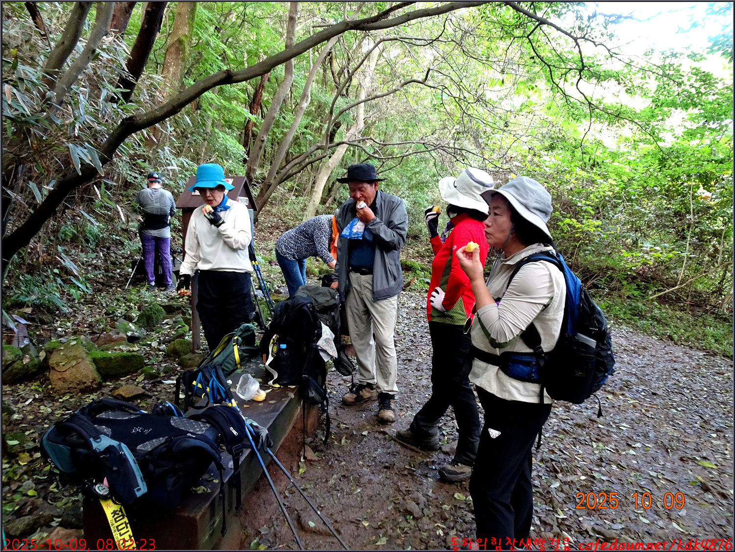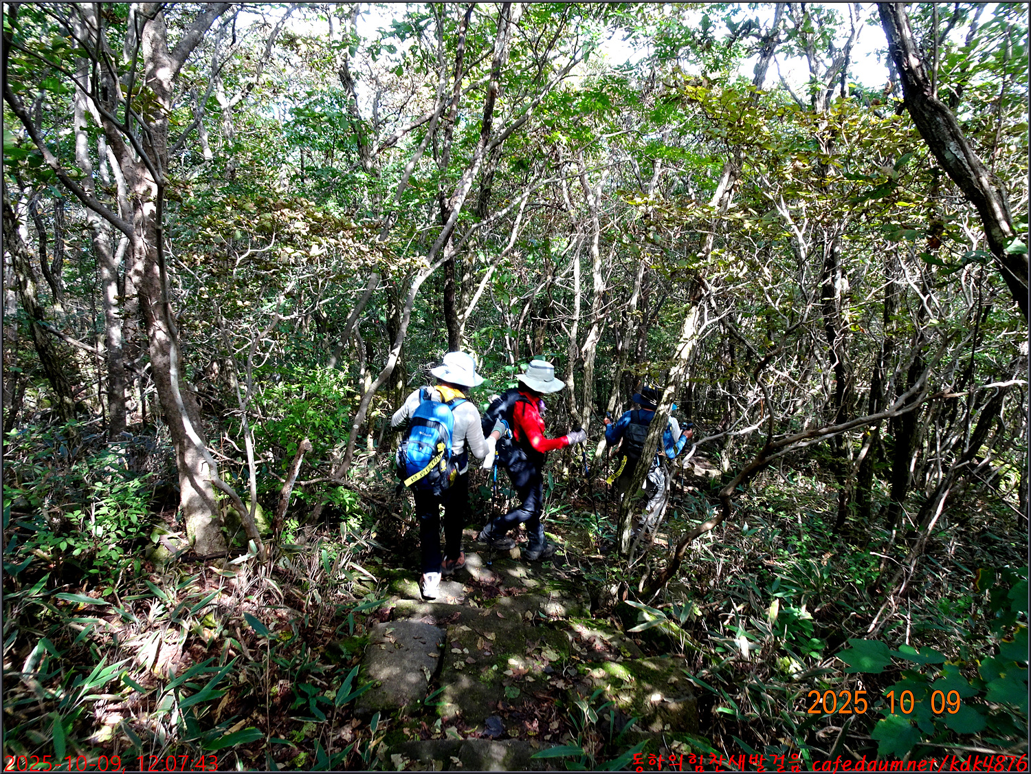 동하도 꼬막재에서 흔적을 남기며 하산을 이어갑니다.