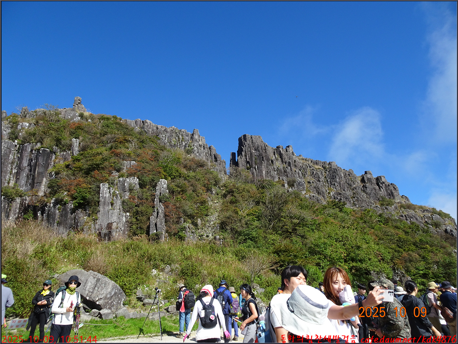 서석대 정상 인증을 하려는 산객들은 길게 줄을 서 있고