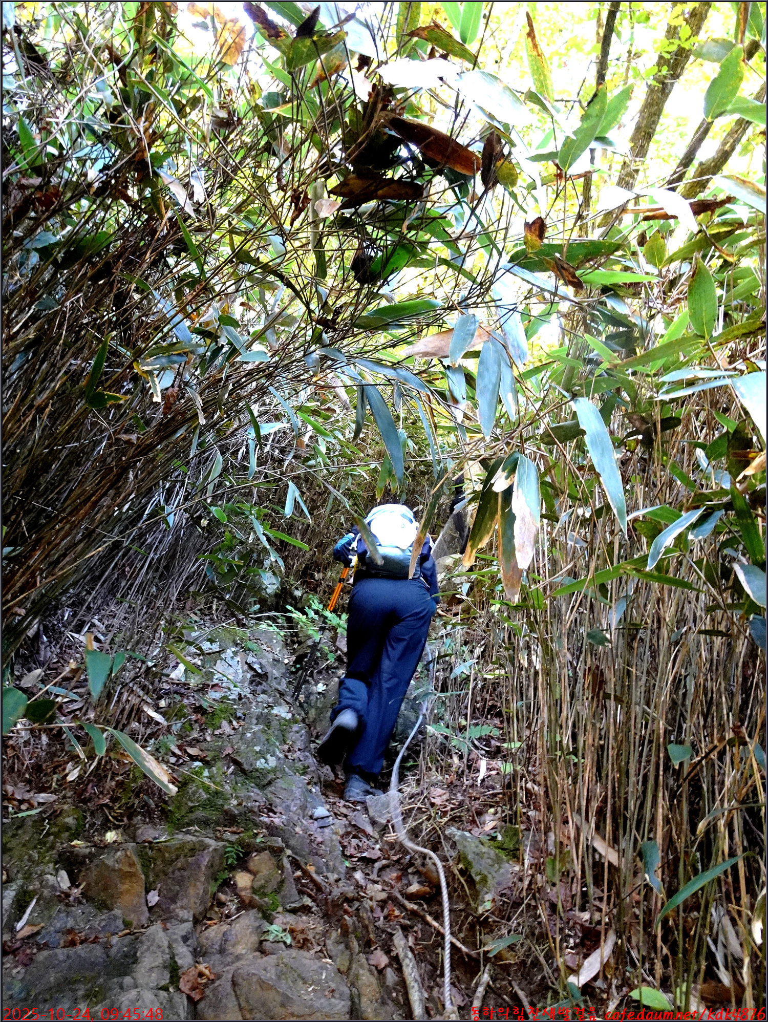 끝없는 돌계단길을 힘들게 내려서며