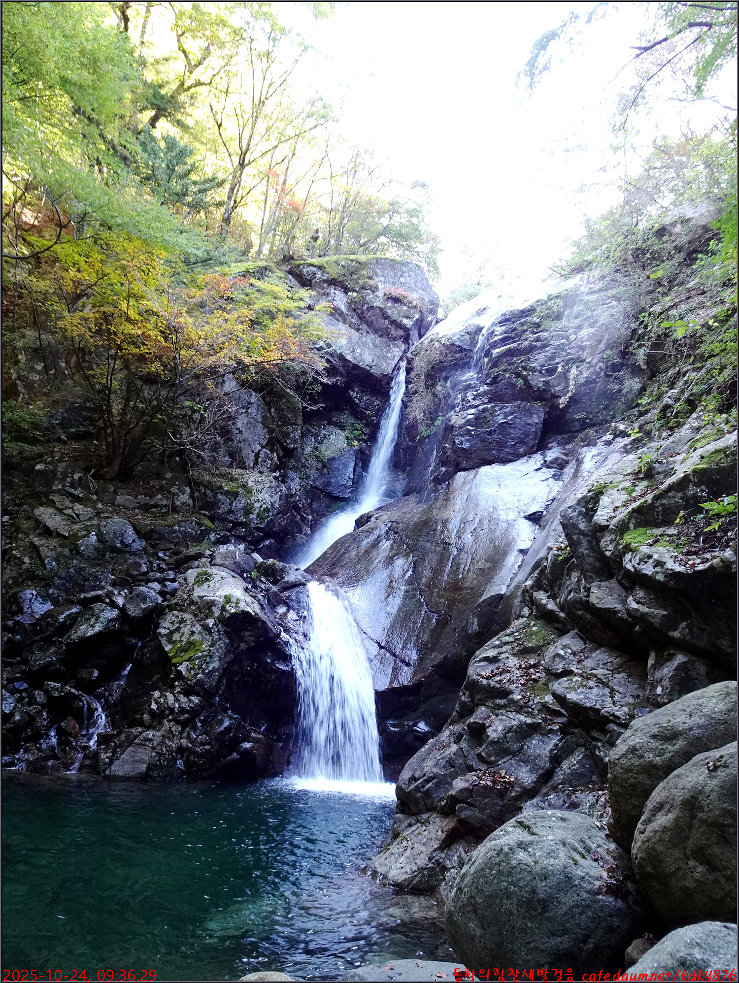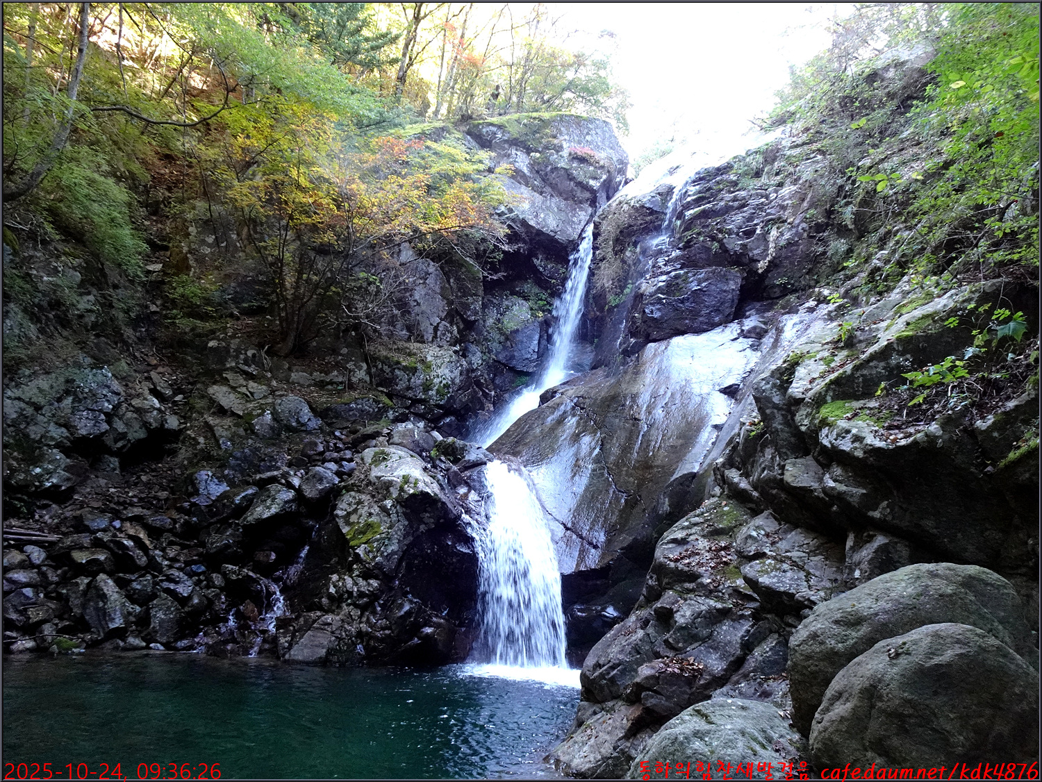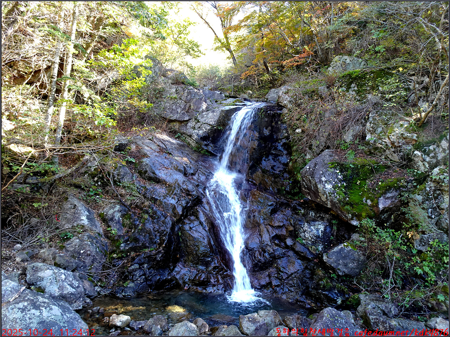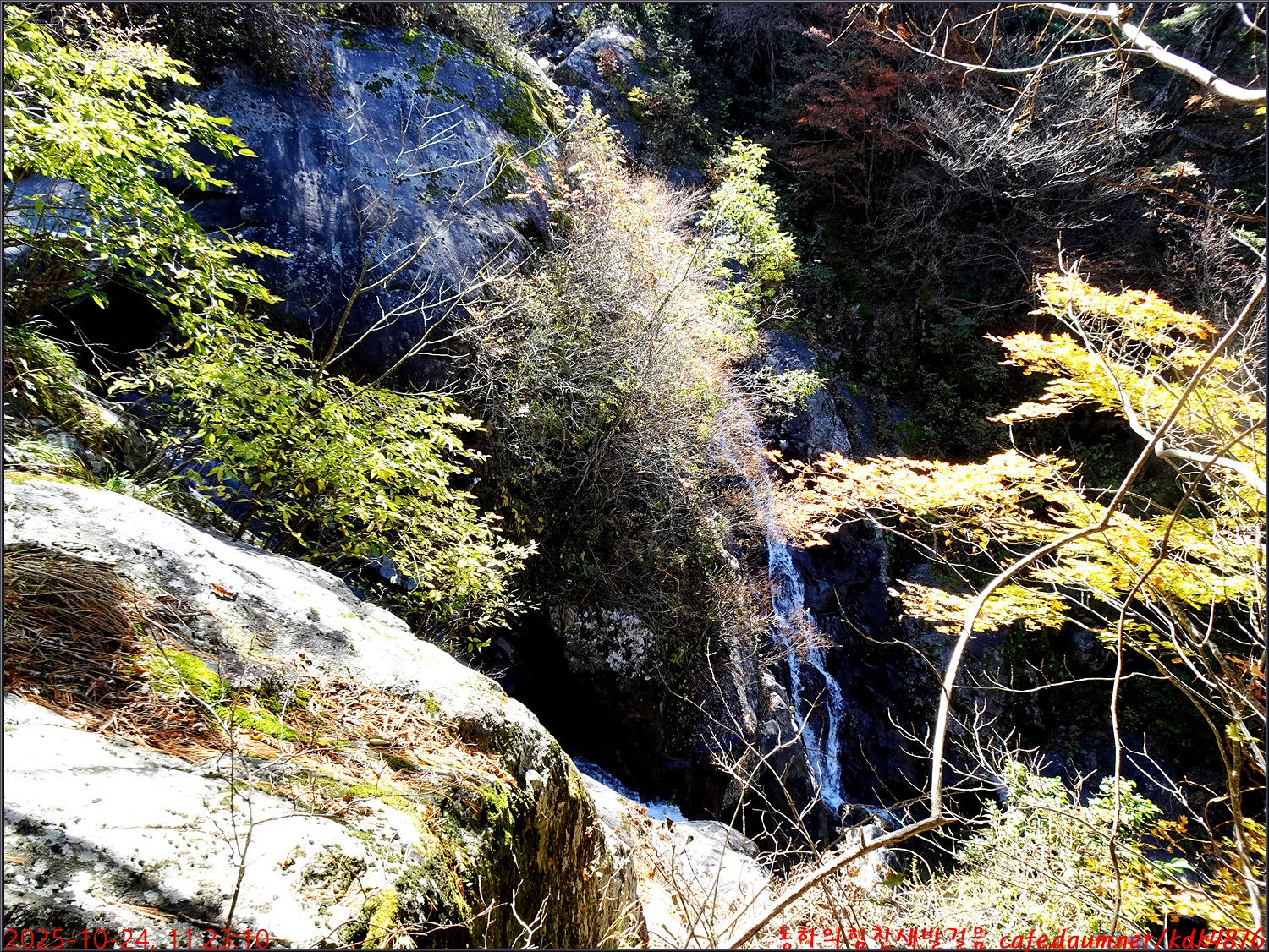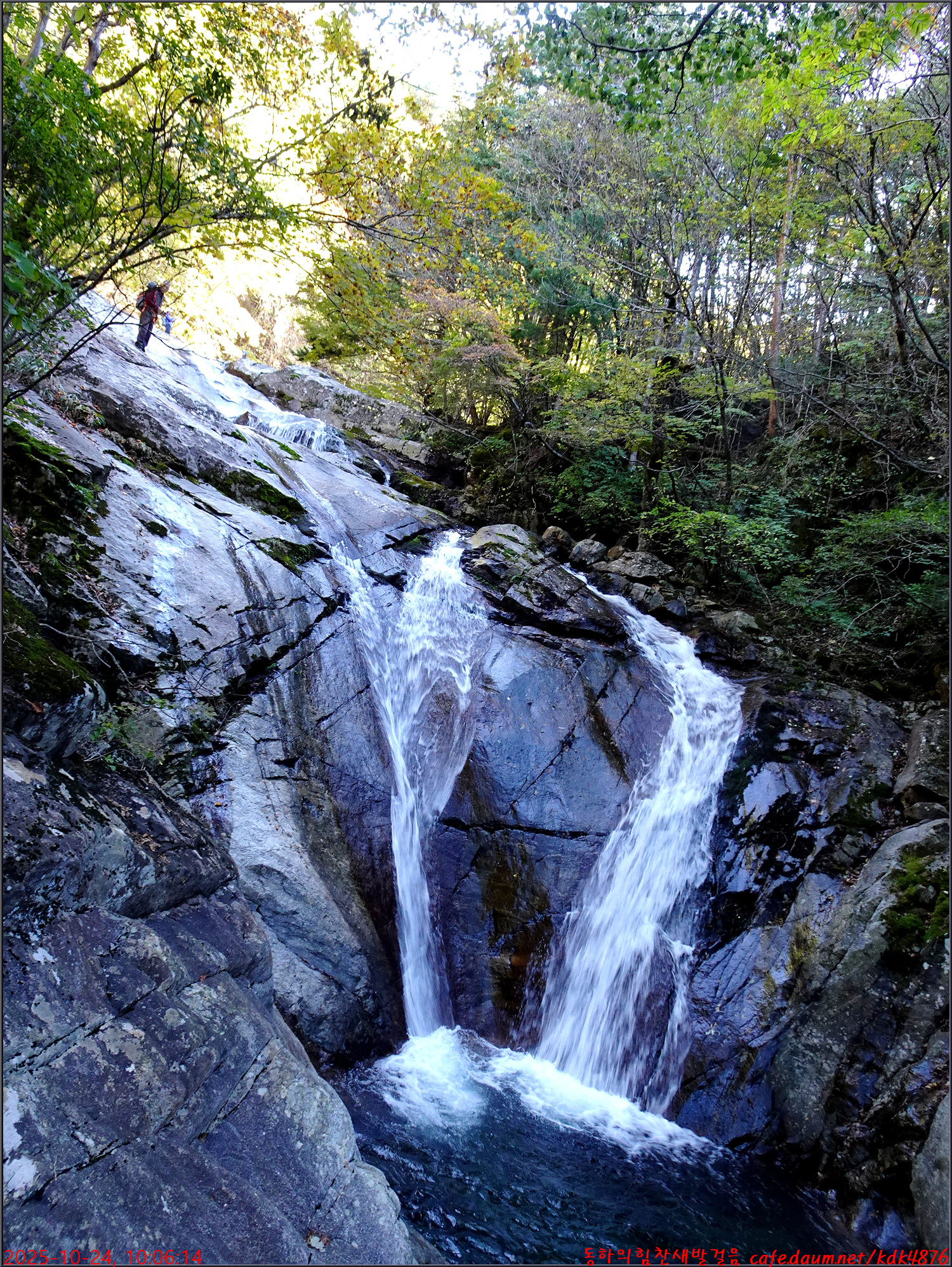 이제 시작된 듯한 단풍 아래로 이름은 없지만 멋진 폭포가 시원스럽고