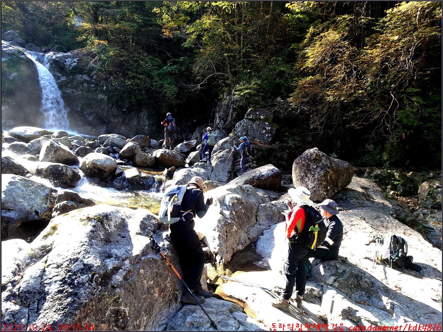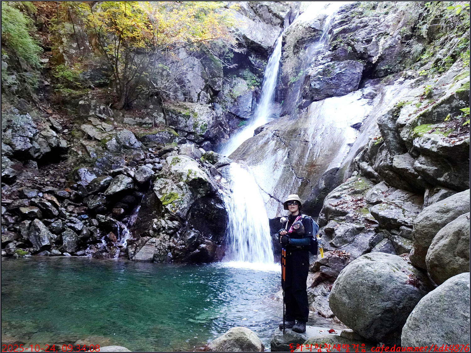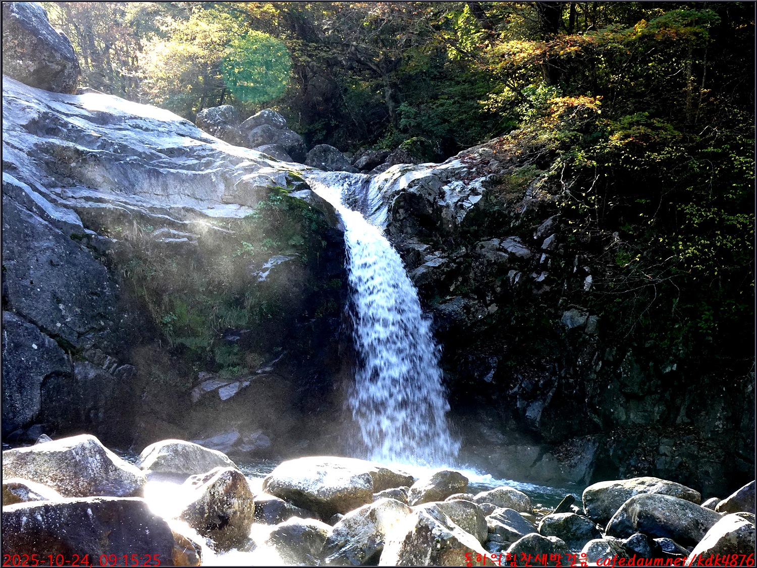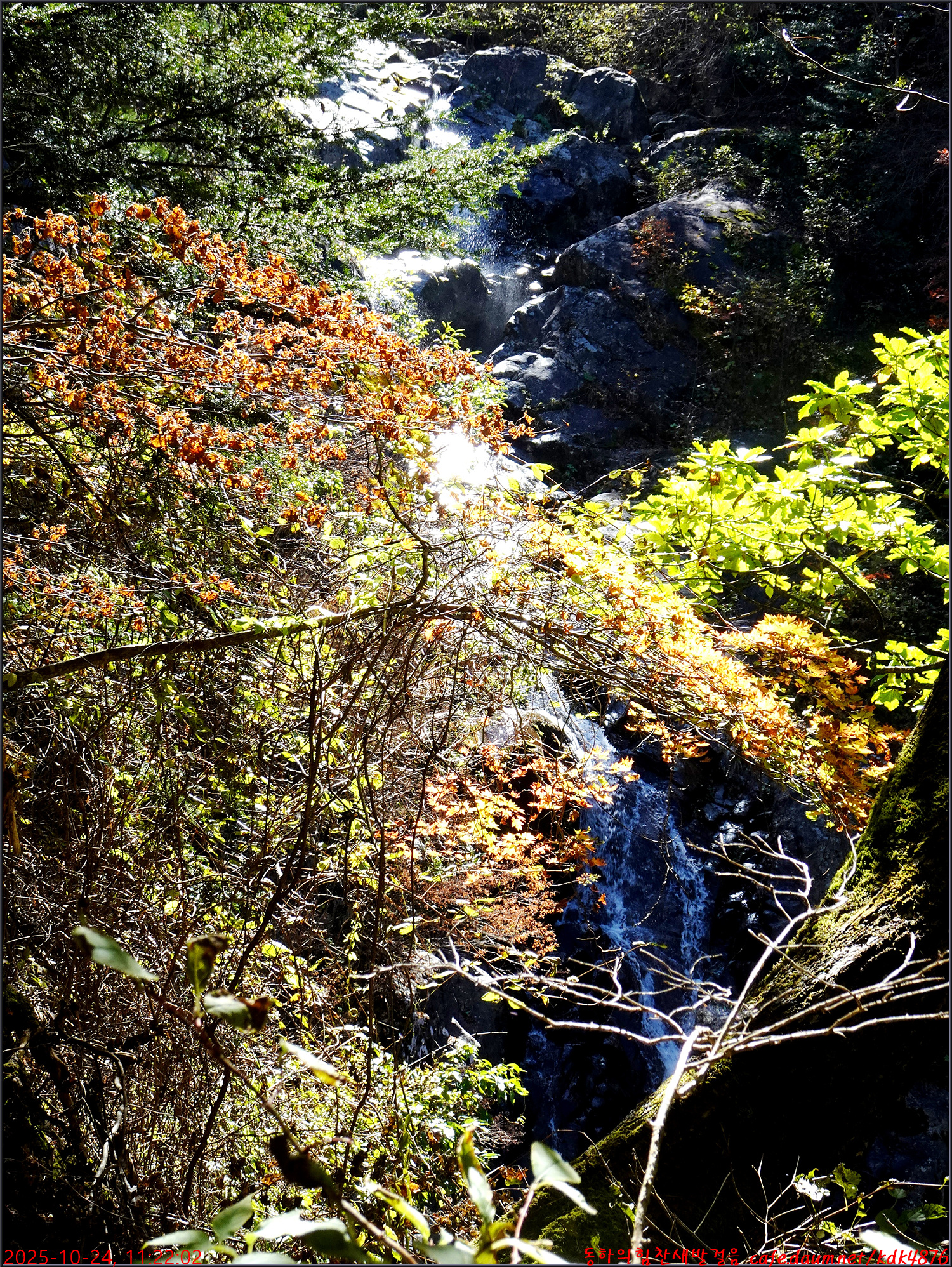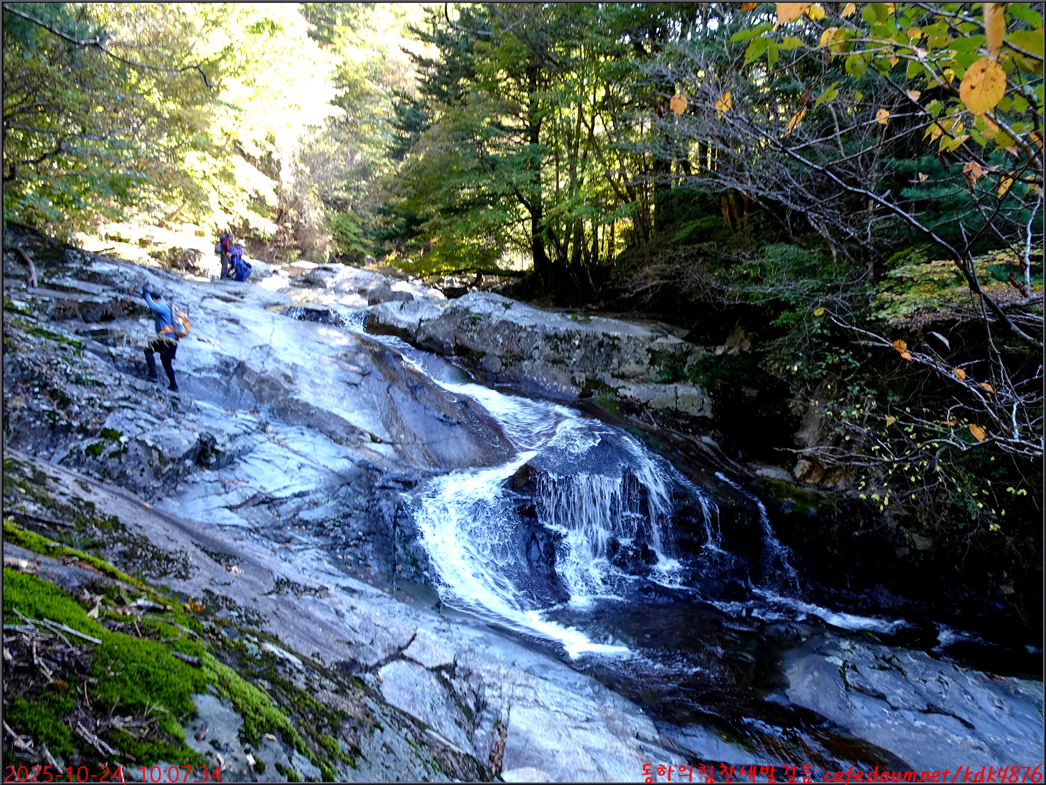 이제 시작된 듯한 단풍 아래로 이름은 없지만 멋진 폭포가 시원스럽고