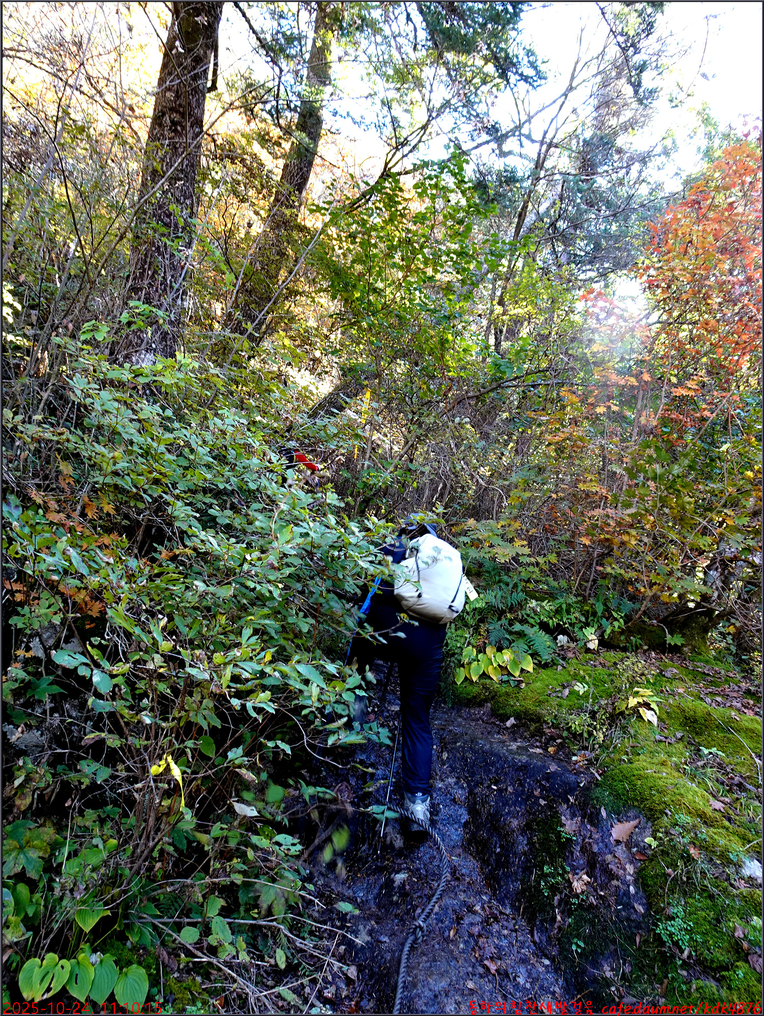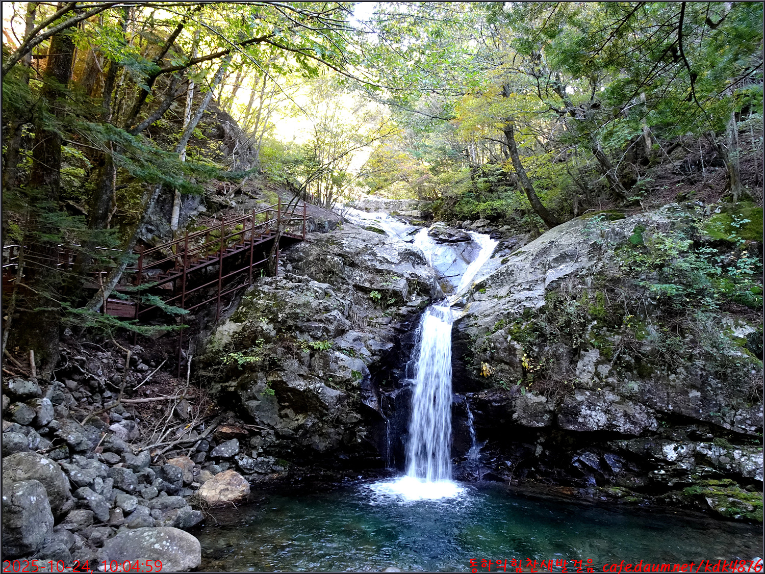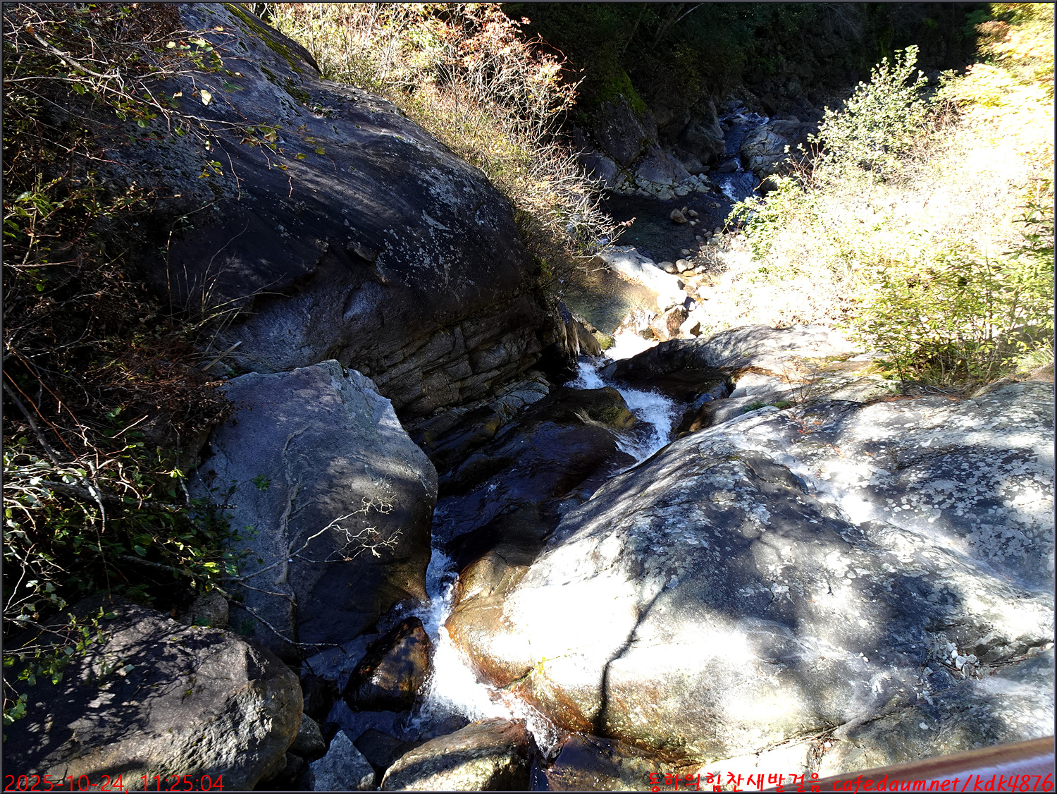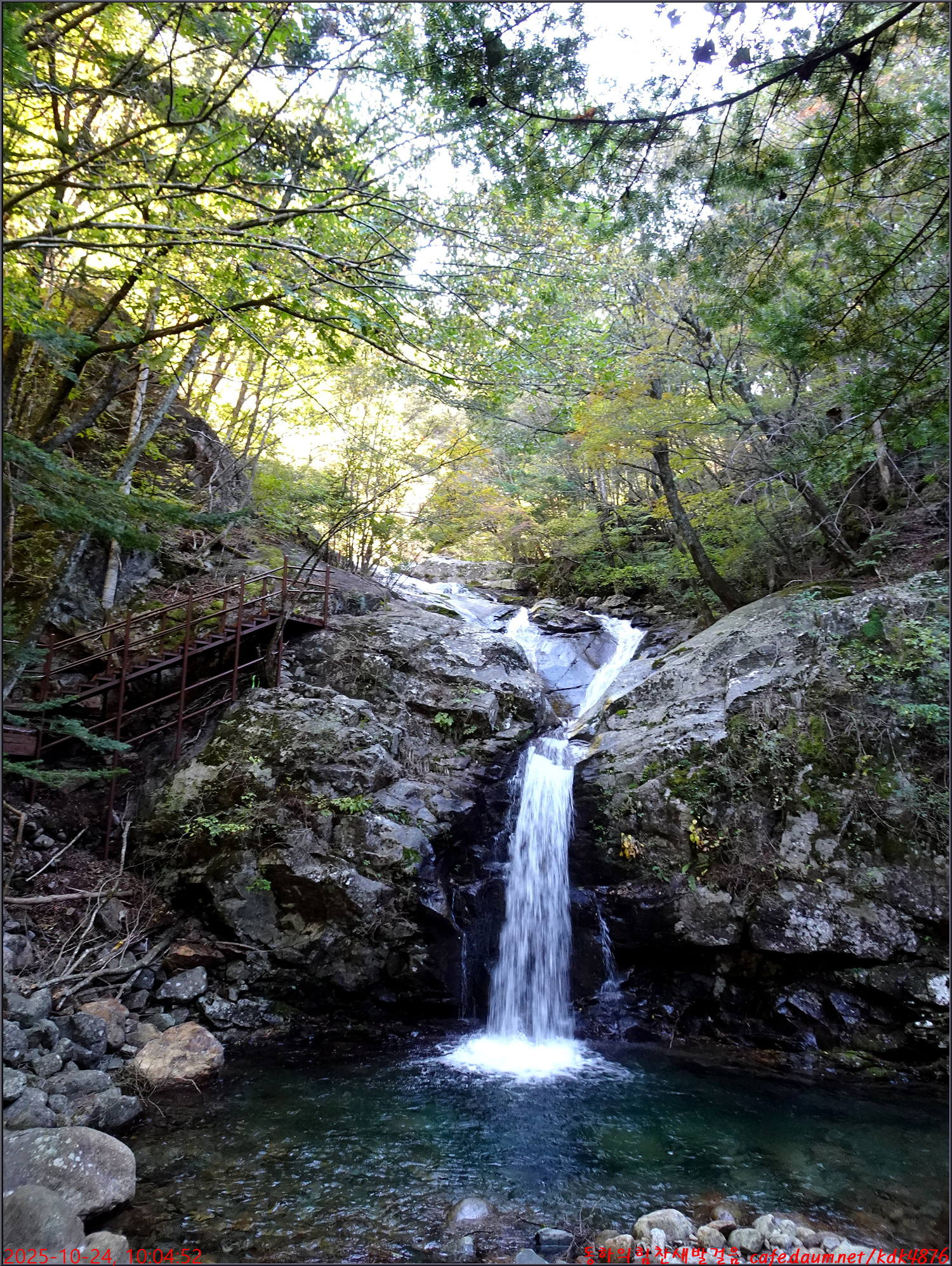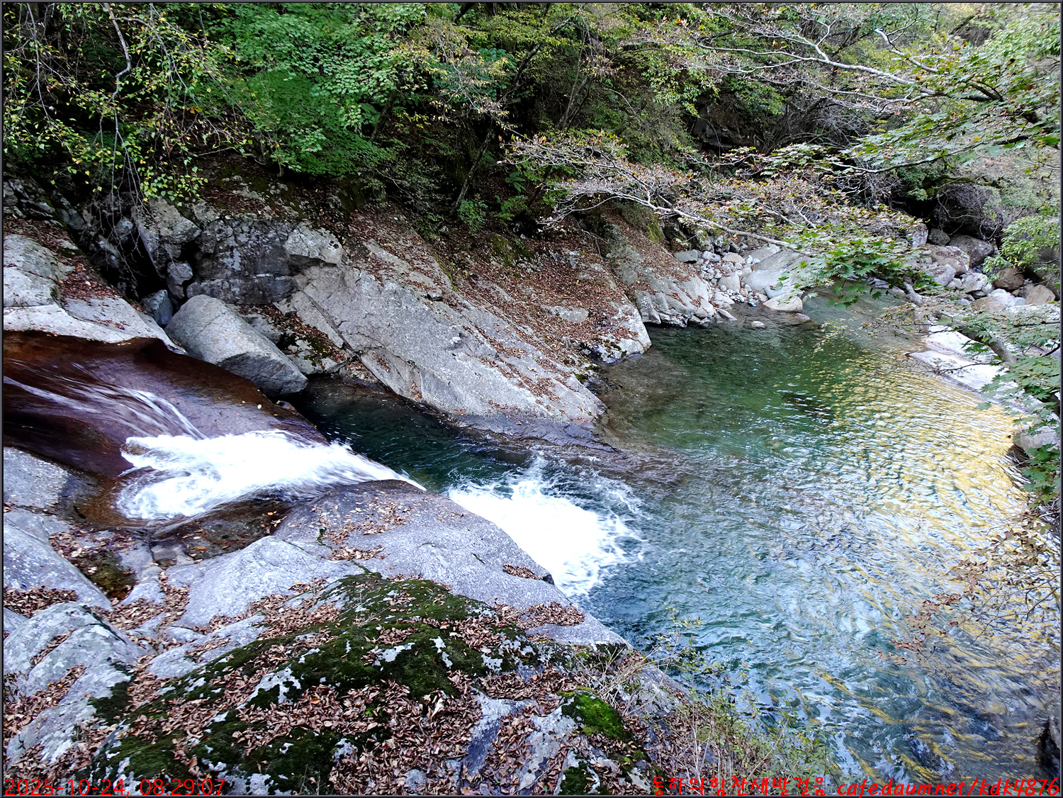 이제 시작된 듯한 단풍 아래로 이름은 없지만 멋진 폭포가 시원스럽고