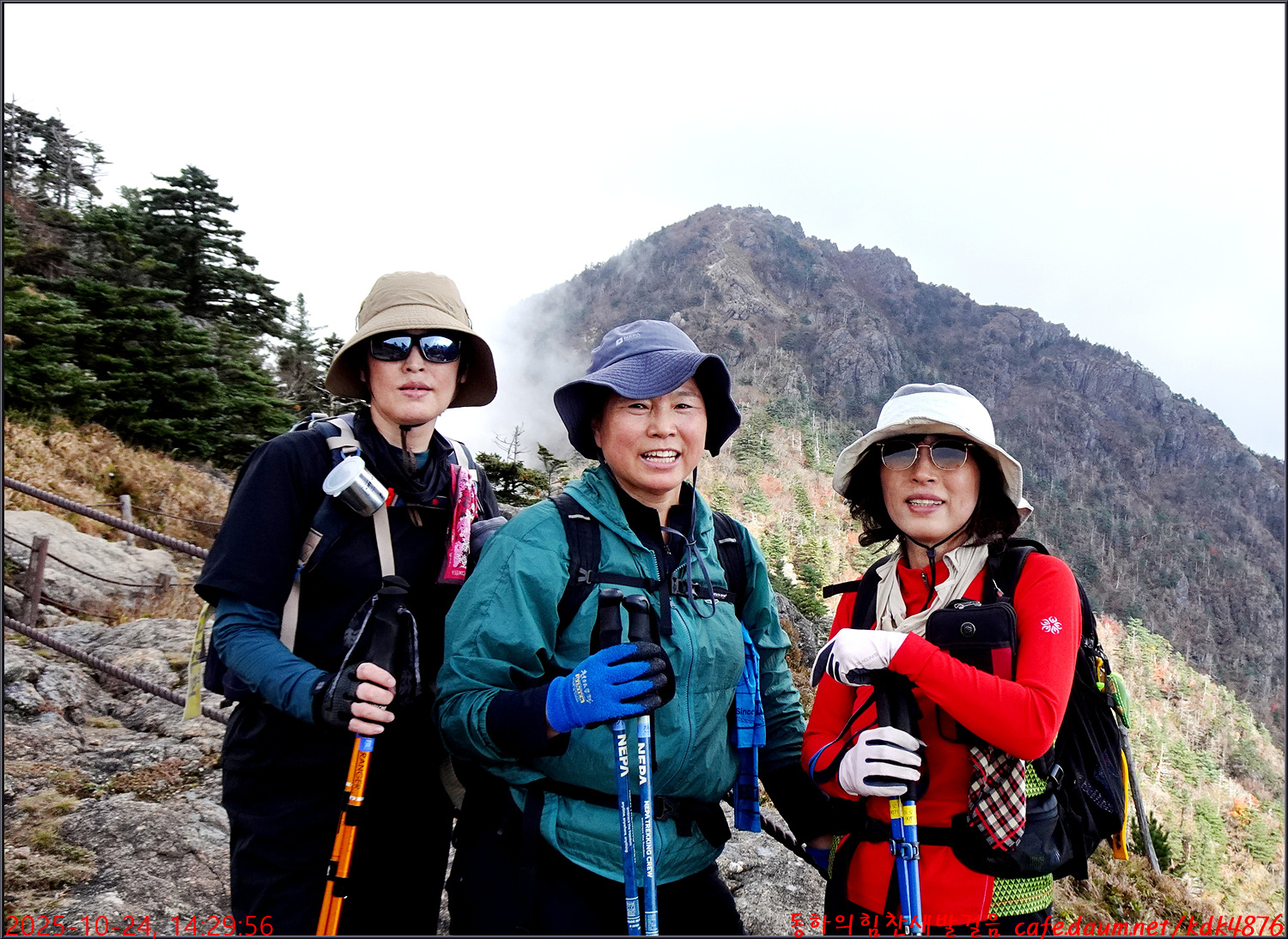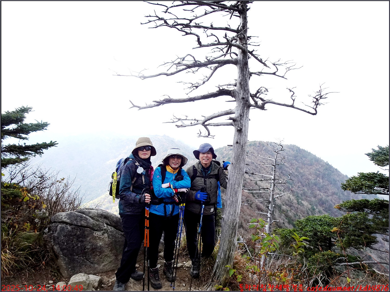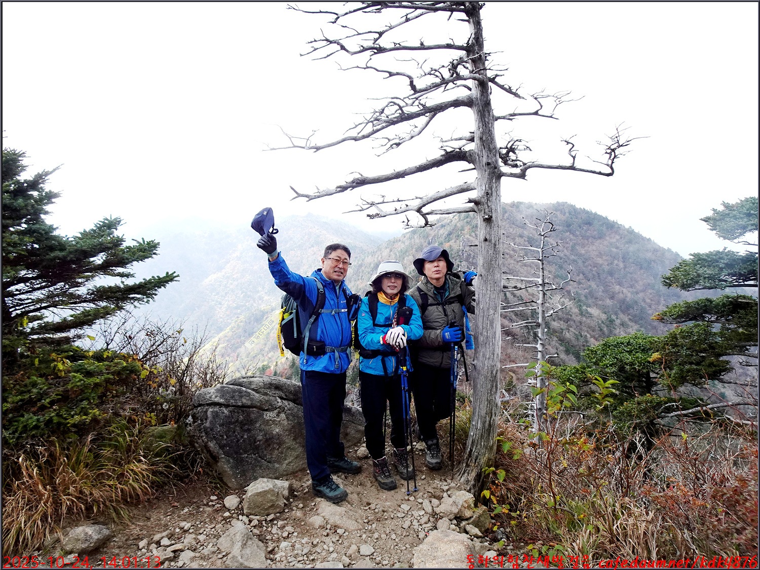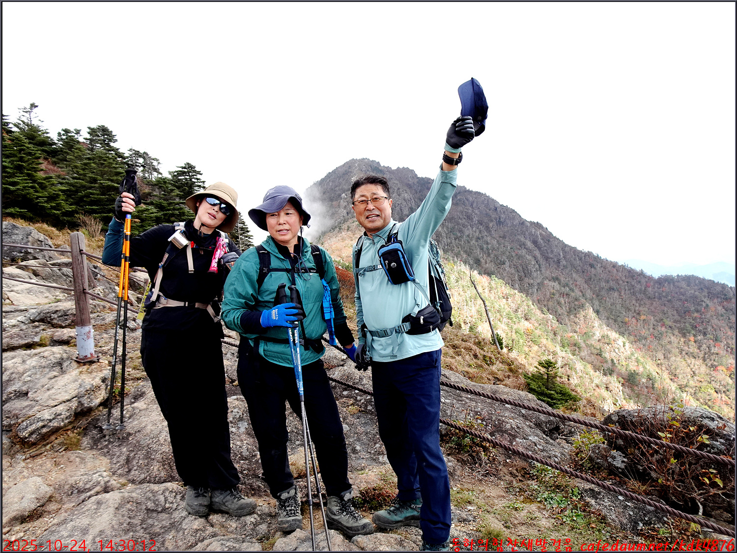 제석봉에서 천왕봉을 배경으로 콜라님, 봉남님, 아로마님