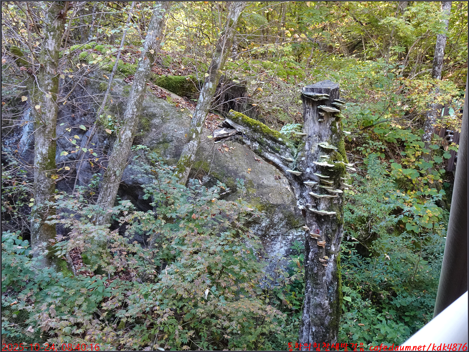 상원교 옆에는 고사목에 고고하게 피어있는 버섯을 만날 수 있고