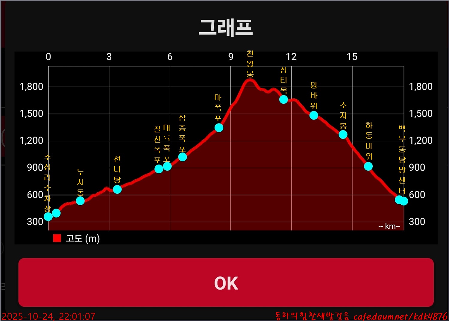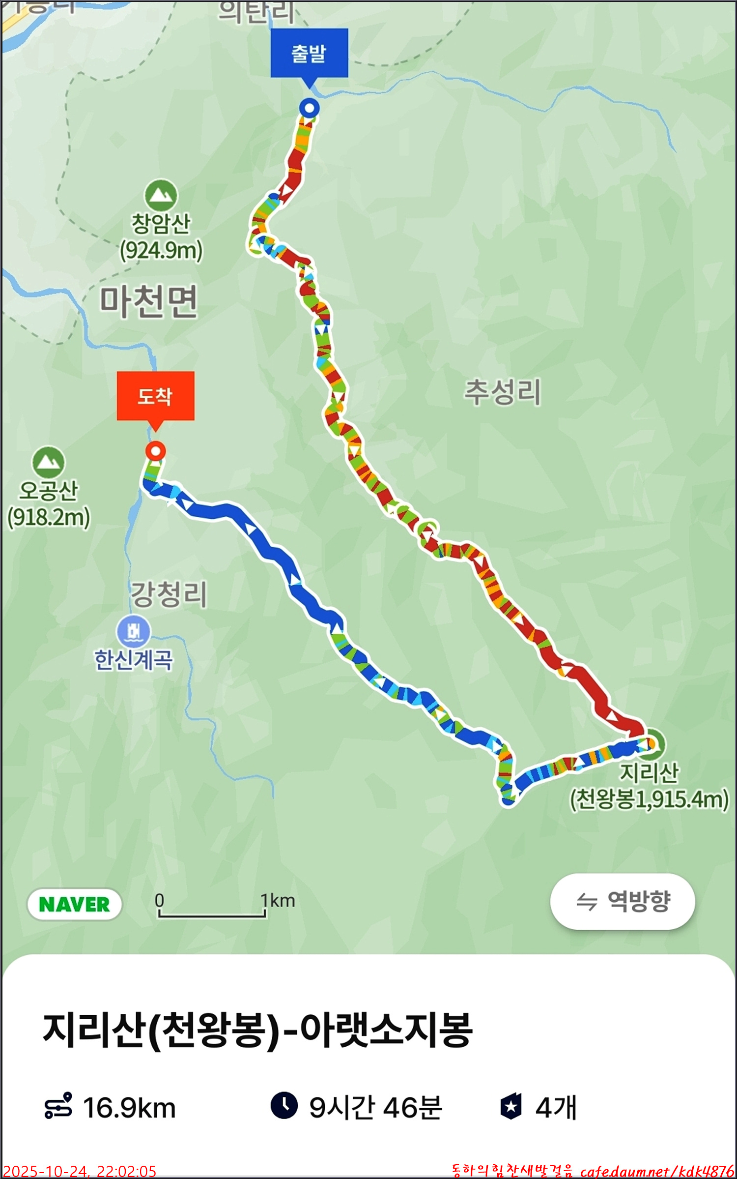 오늘의 함양 지리산 천왕봉 산행고도
