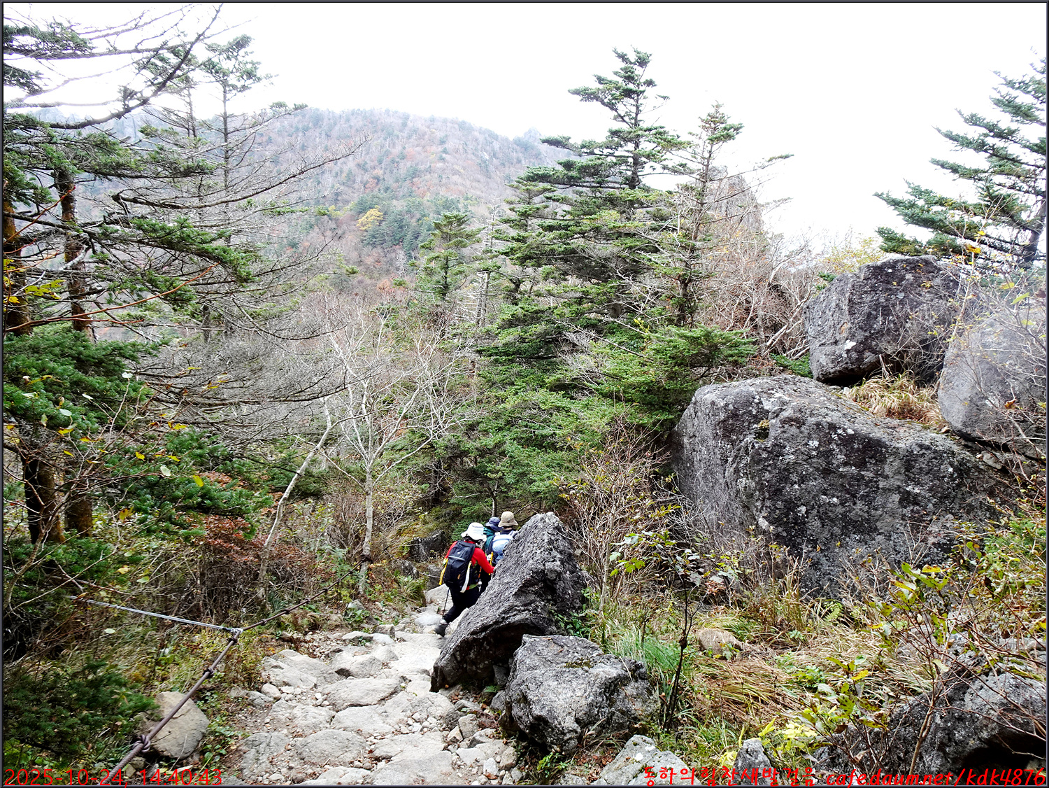 이제 제석봉을 향하여 하산을 시작합니다.