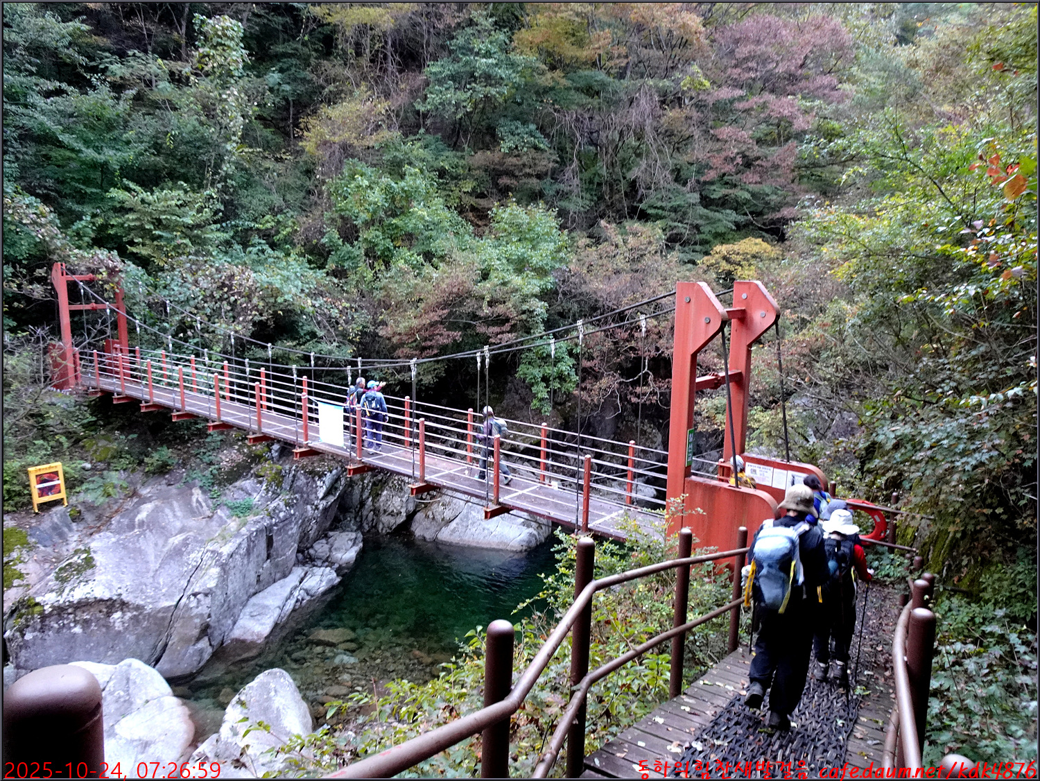 흔들다리 칠선교를 건너고