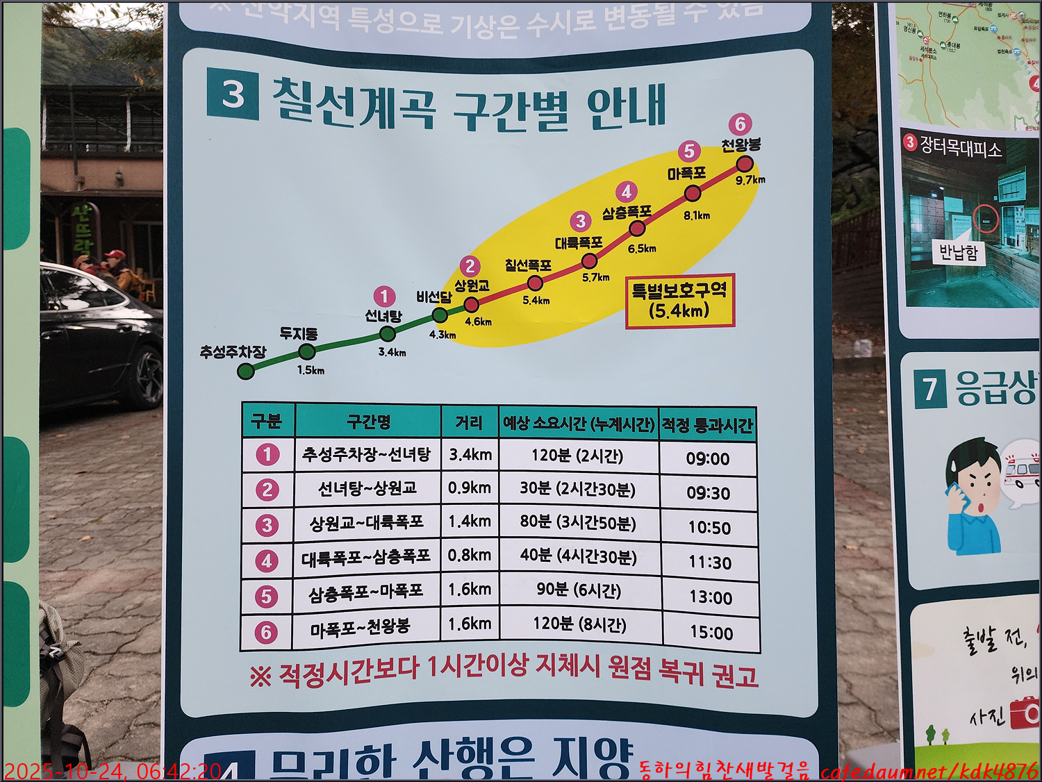 칠선계곡 구간별 산행시간 안내