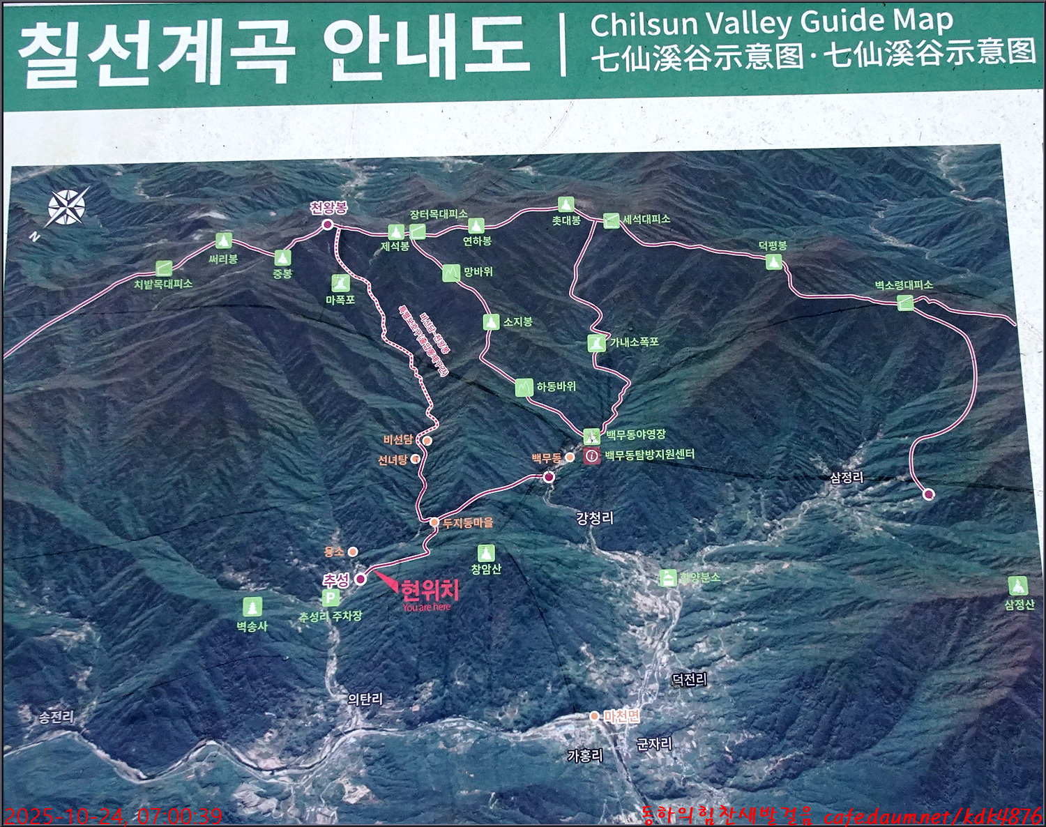 칠선계곡 안내도를 살펴보며 오늘 걸을 길을 가늠해 봅니다.