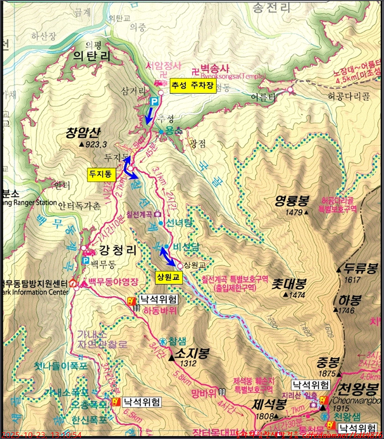 산행코스 : 추성리-칠선계곡-두지동-칠선교-선녀탕-옥녀탕-비선담-상원교