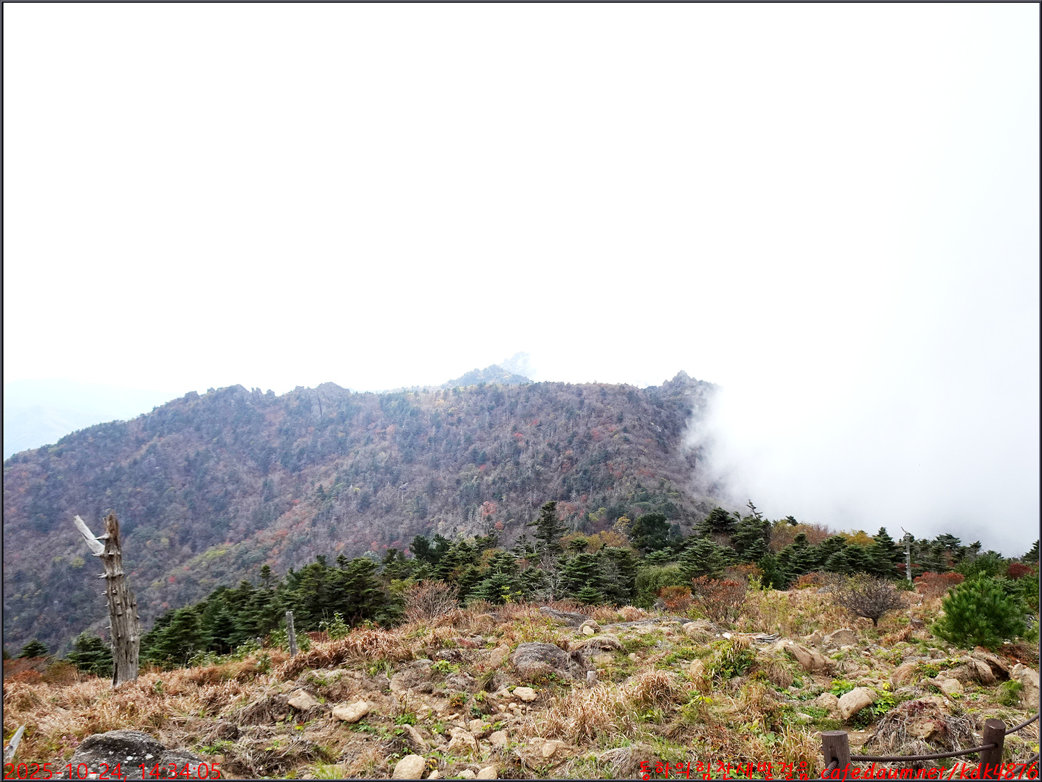 연하봉 촛대봉만 겨우 조망할 수 있군요.