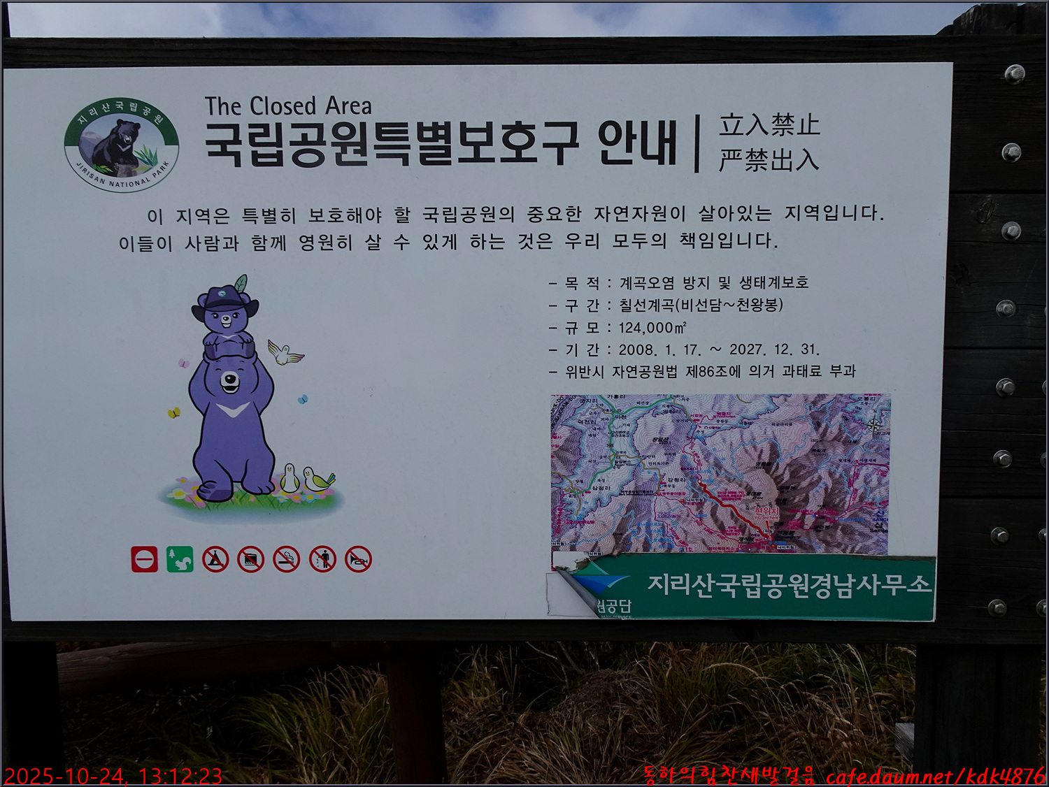 그동안의 칠선계곡 비탐방구간을 오늘은 당당하게 문을 열고 들어갑니다.