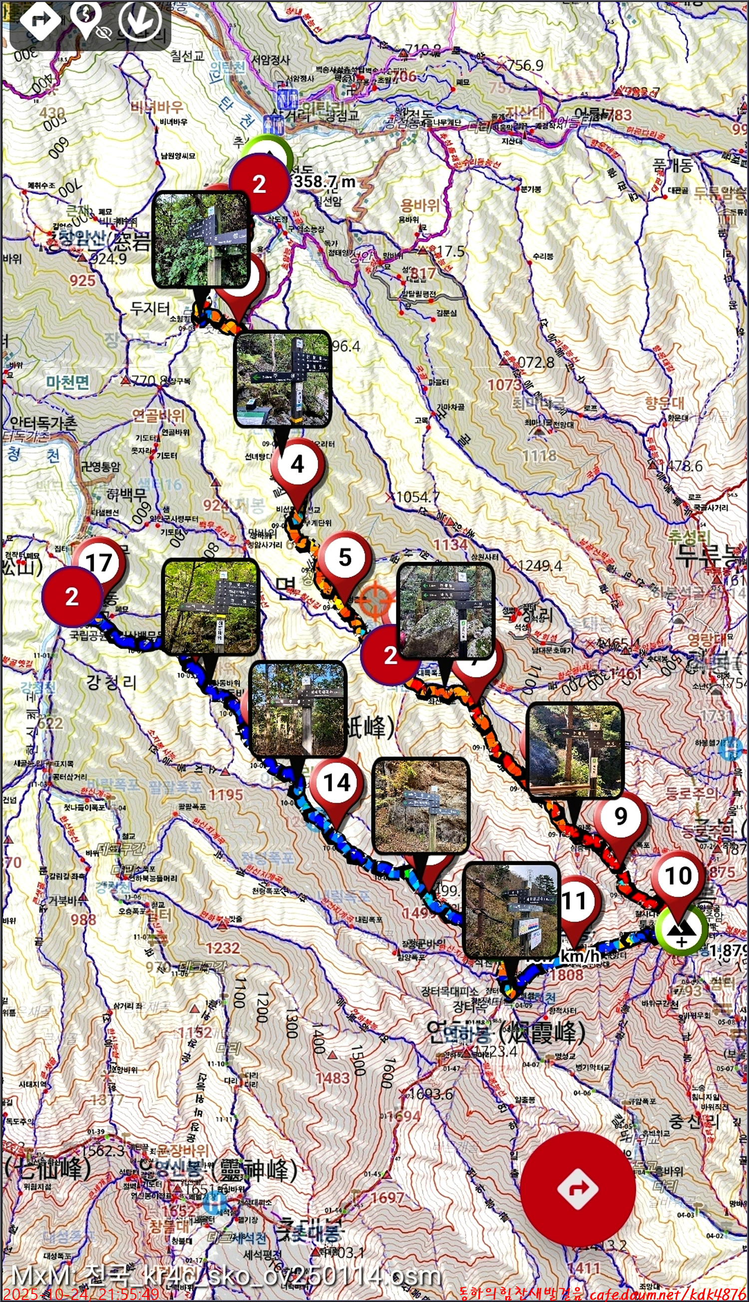 17.55km에 10시간 29분이 소요되었군요.