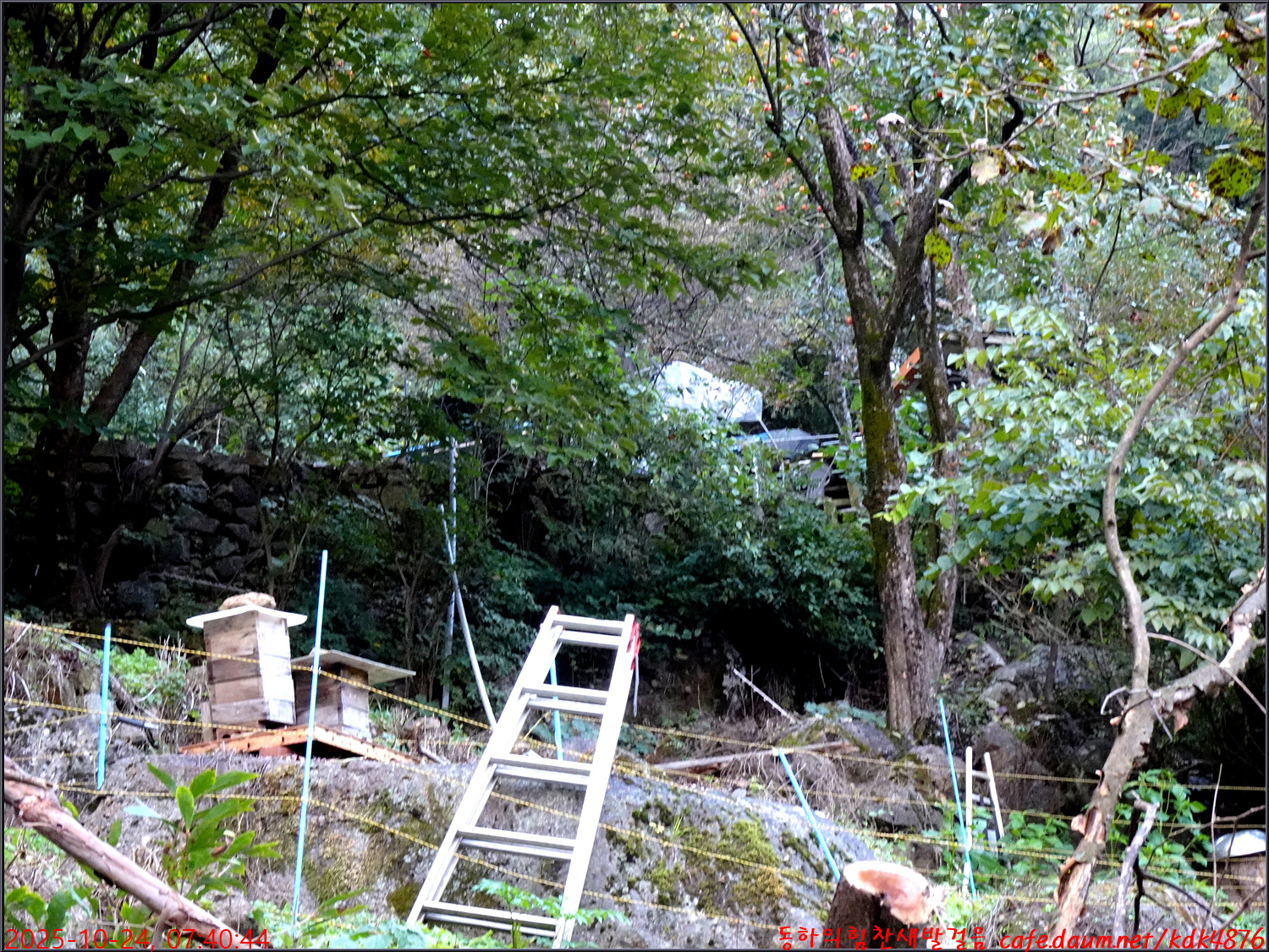 산 속에 토종벌꿀을 키우고 있는 모습과 산 중의 집 한채