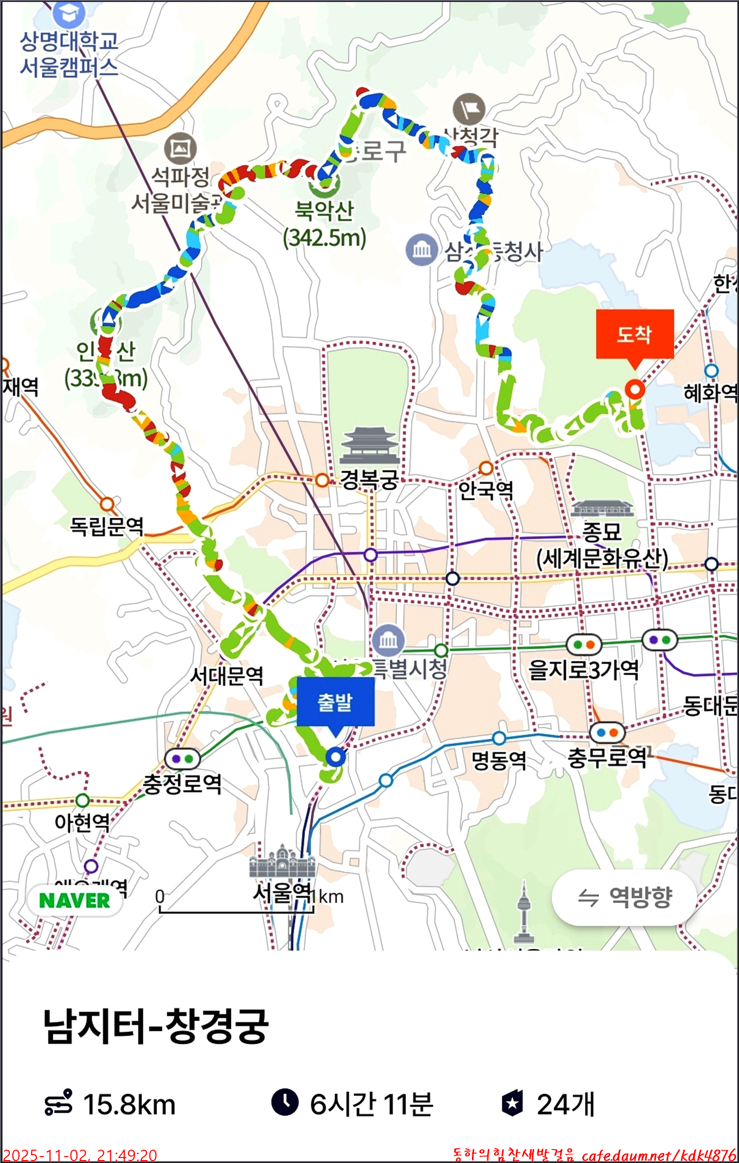 산행코스 : 숭례문-덕수궁-인왕산-창의문-백악산(북악산)-청운대-백악곡성-숙정문