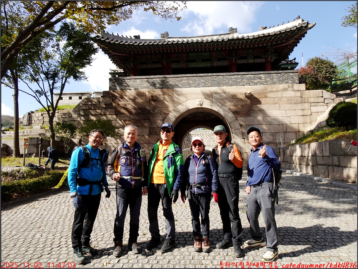 숭례문 앞에서 기념촬영을 하며 한양도성순성길을 시작합니다.