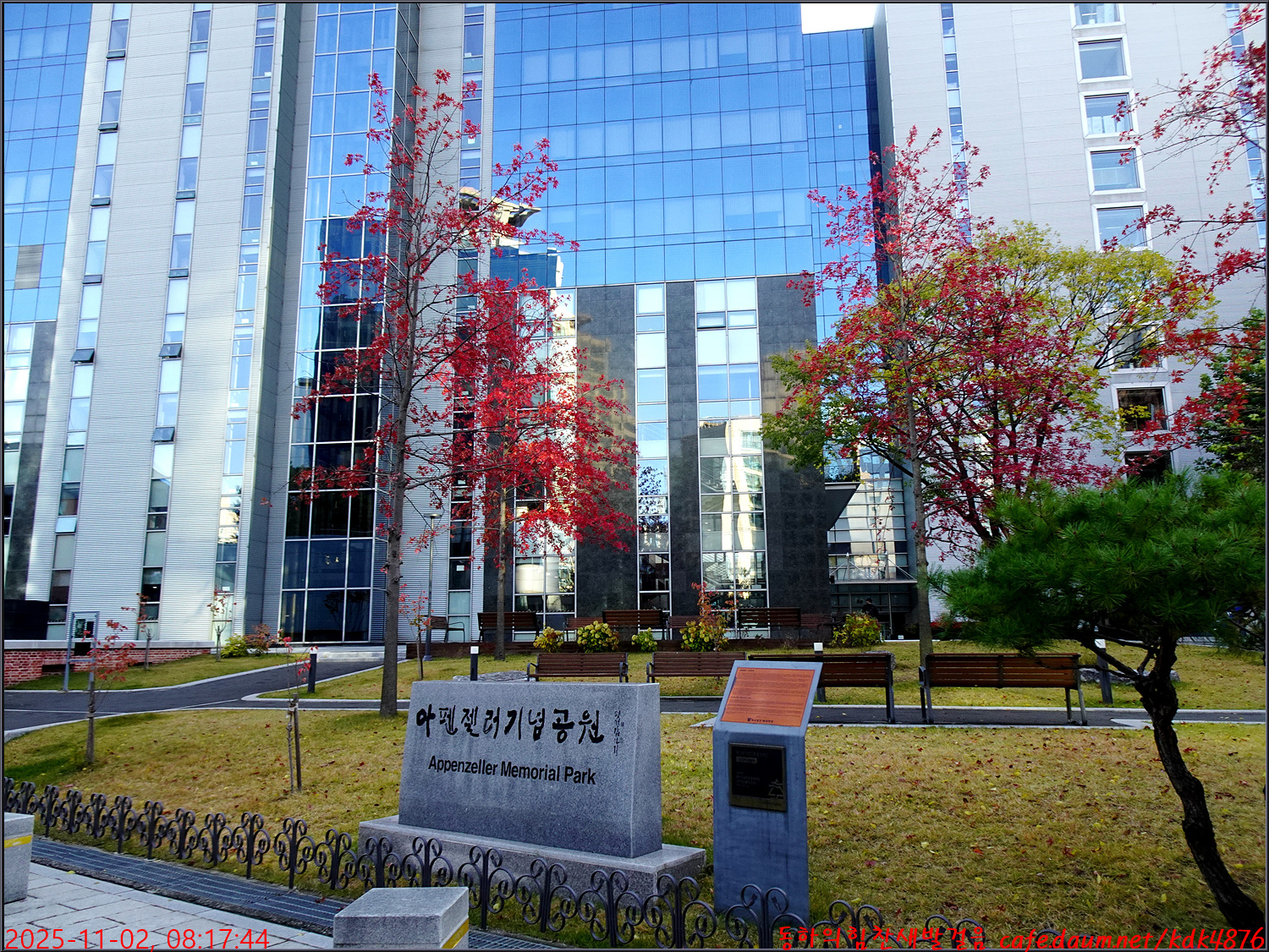아펜젤러기념공원에 도착하니 빨간 단풍이 요염하군요.