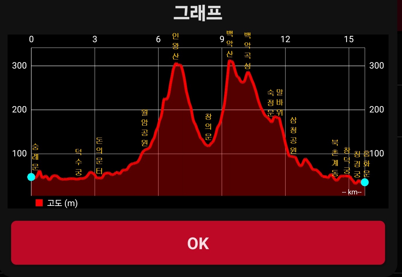 오늘의 서울 한양고성순성길 산행고도