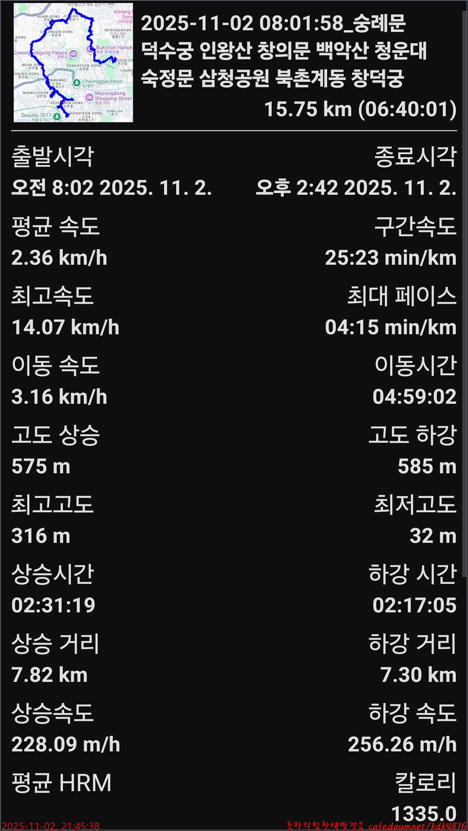 15.75km에 6시간 40분이 소요되었군요.