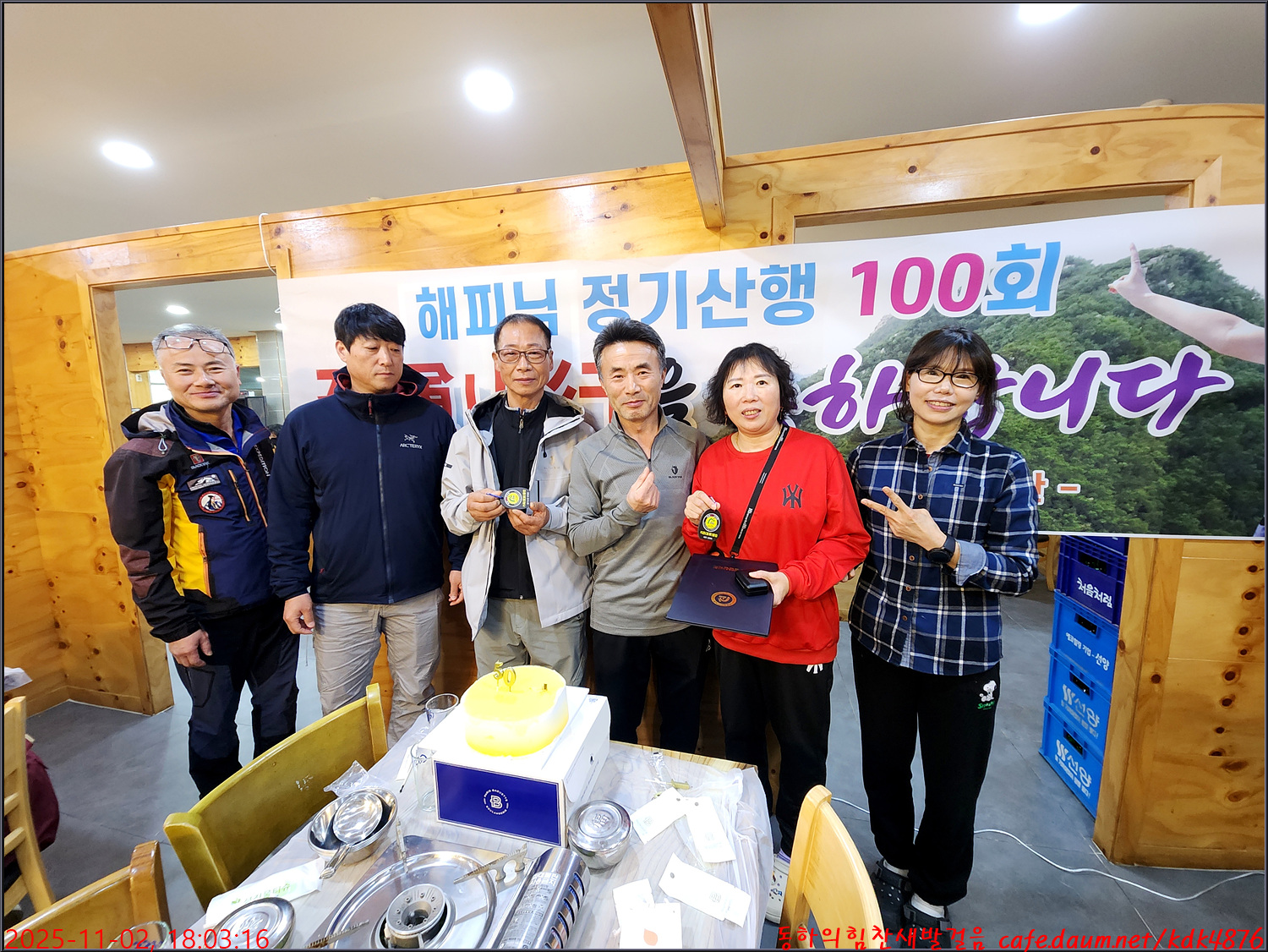 해피님 정기산행 100회 지존(至尊)산행을 축하드리며 기념촬영을 하고