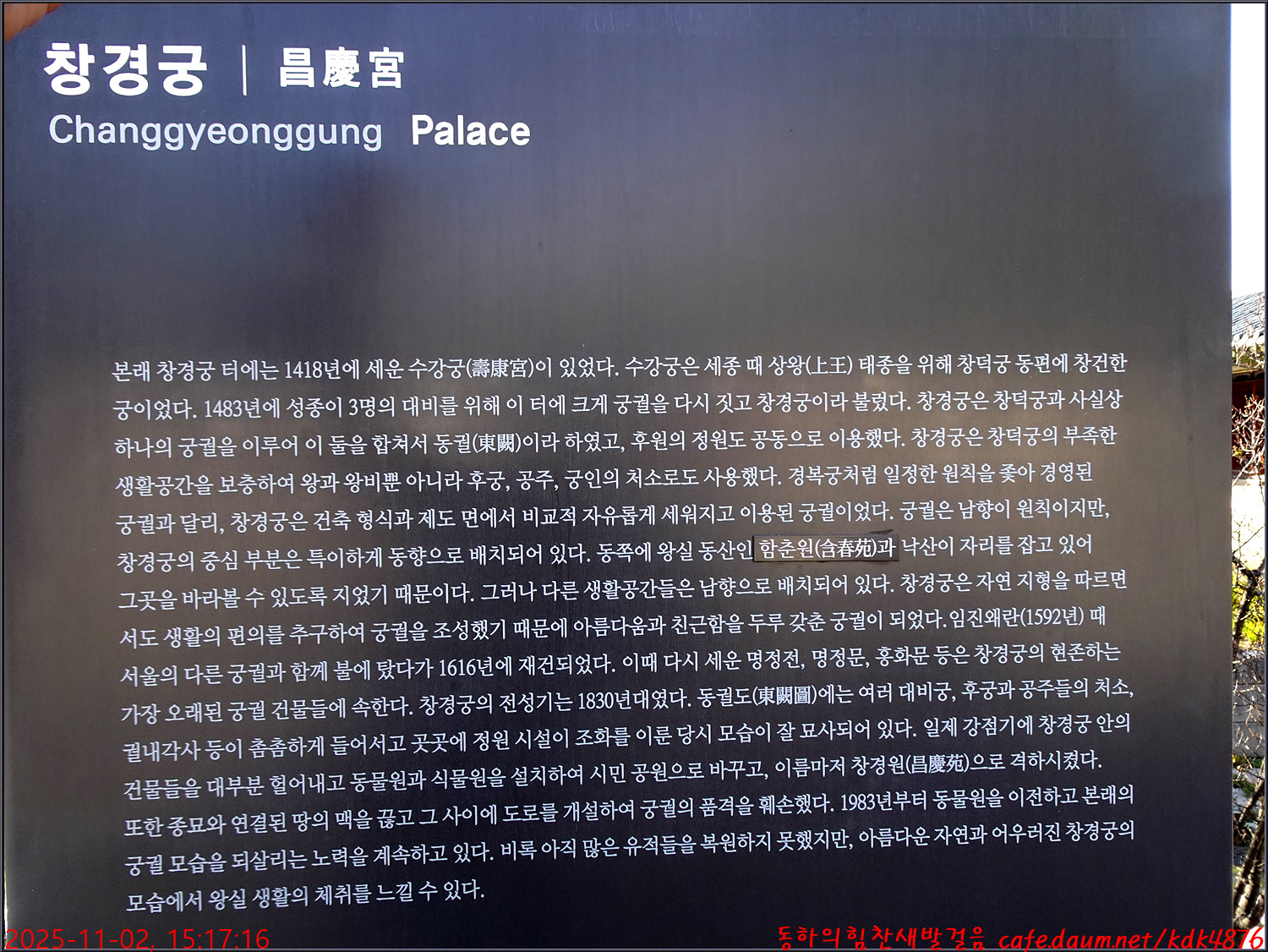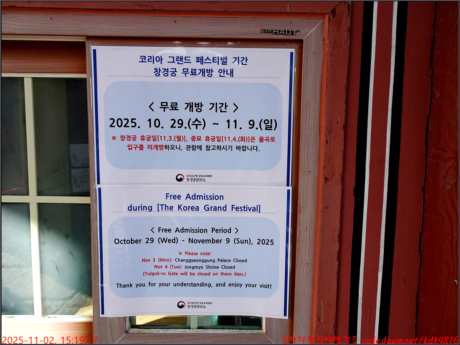 인정전에서 장미님과 동하고문, 둘이서 함께 흔적을 남기고