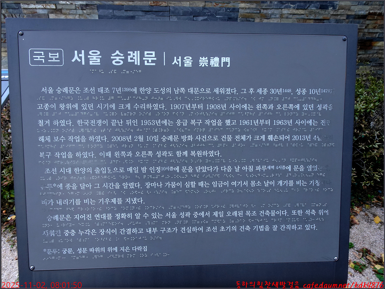B조 회원들은 다시 버스를 타고 숭례문(남대문)으로 이동했습니다.