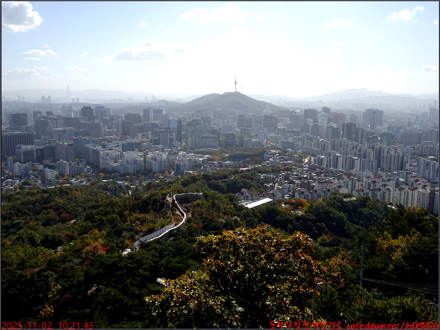 바로 앞으로 남산타워가 하늘을 찌르고