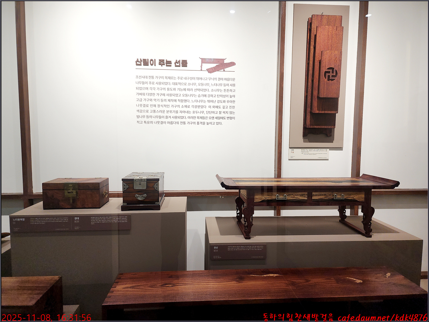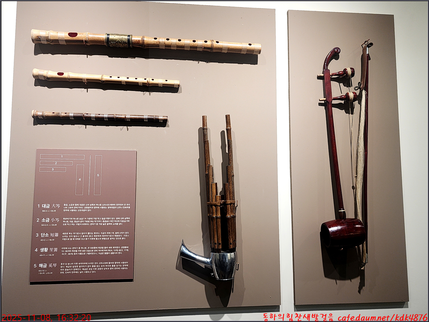 나무로 만들어진 각종 악기들이 전시되어 있고