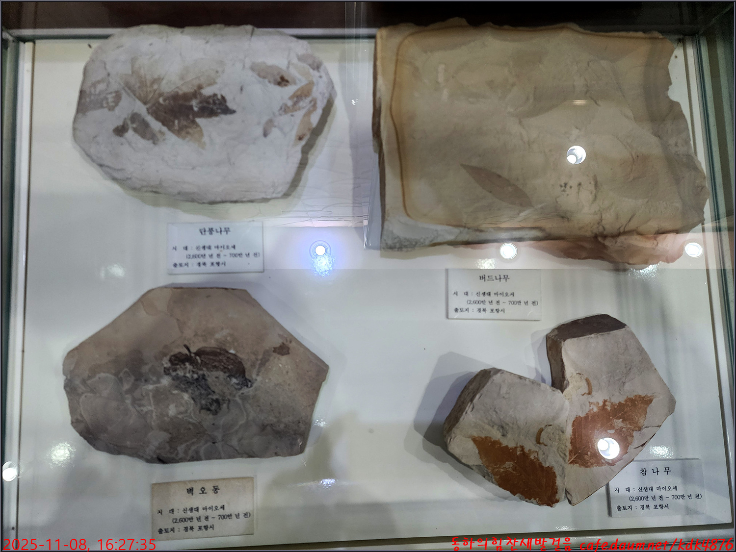 각종 나뭇잎의 화석은 이렇게 생겼습니다.
