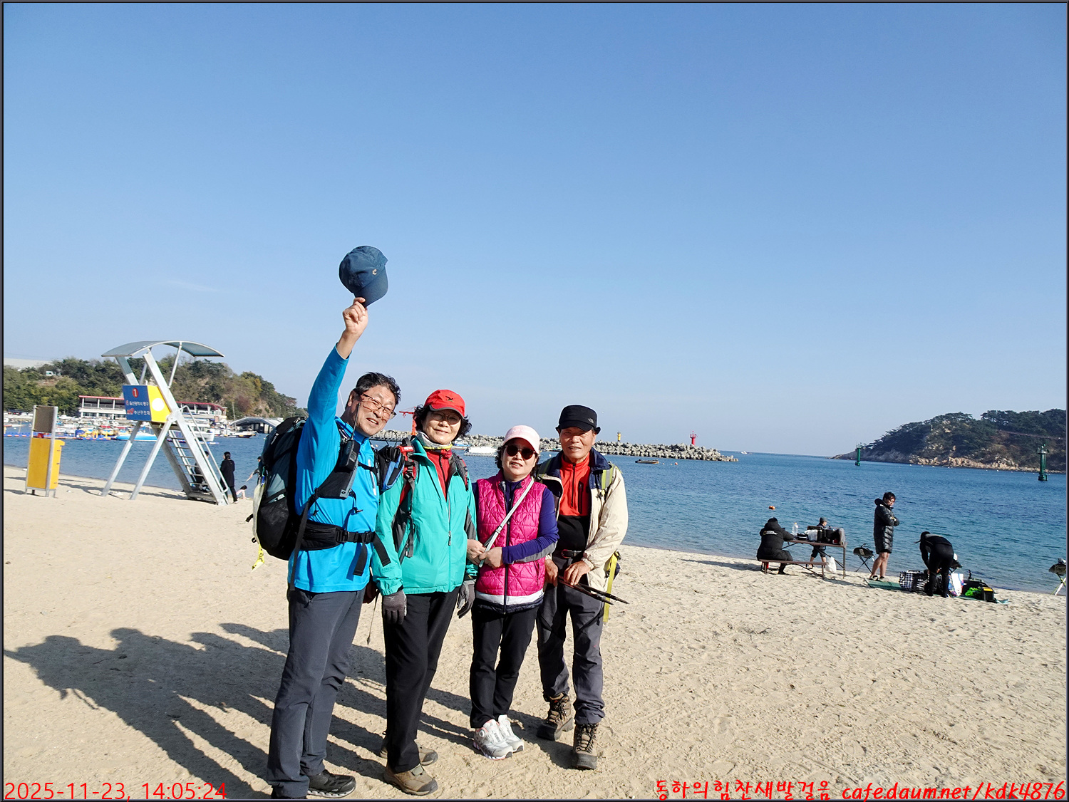 이렇게 14명의 회원들이 신명해변에서 트래킹을 시작합니다.
