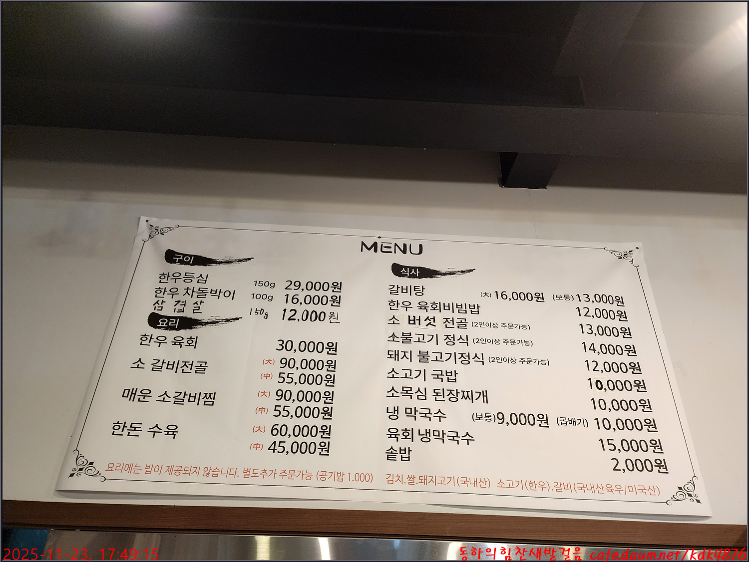 더우내식당의 차림표, 오늘의 메뉴는 갈비탕 13,000원