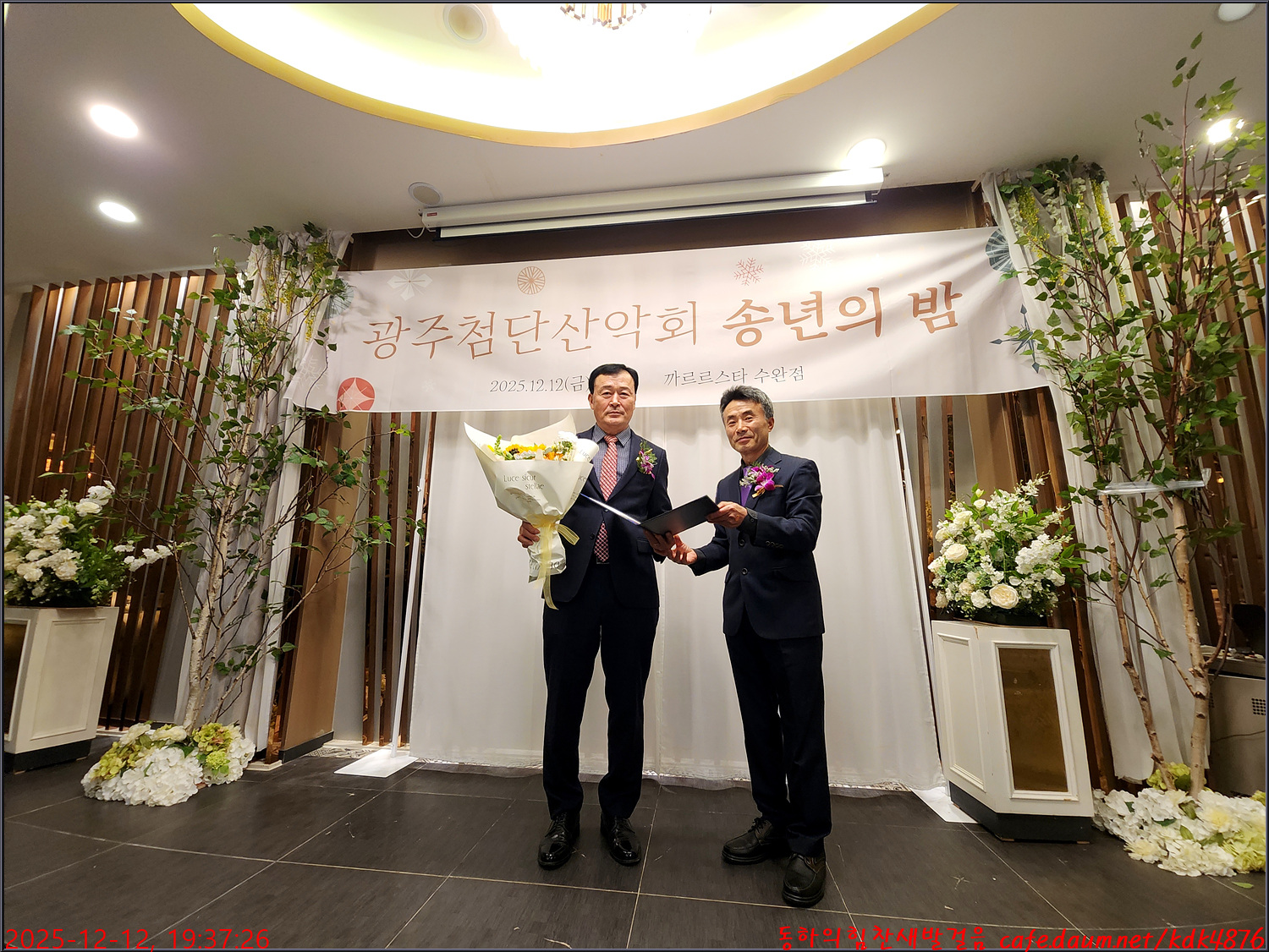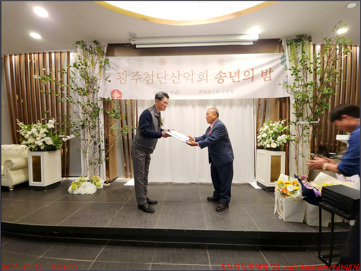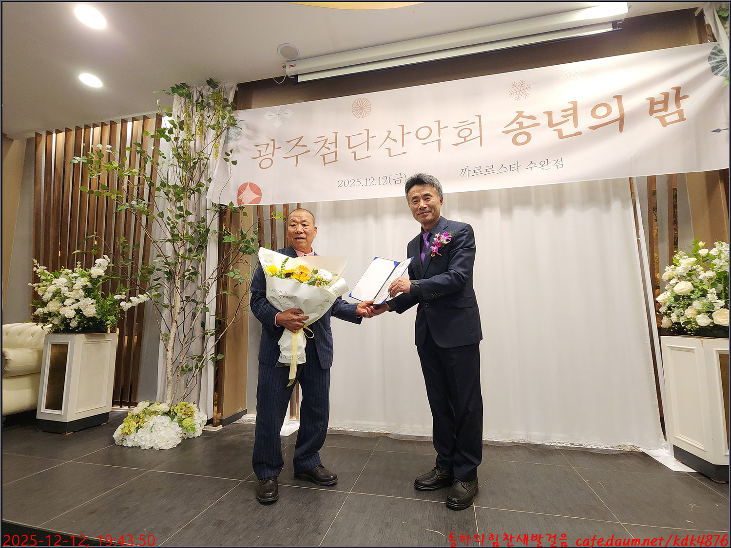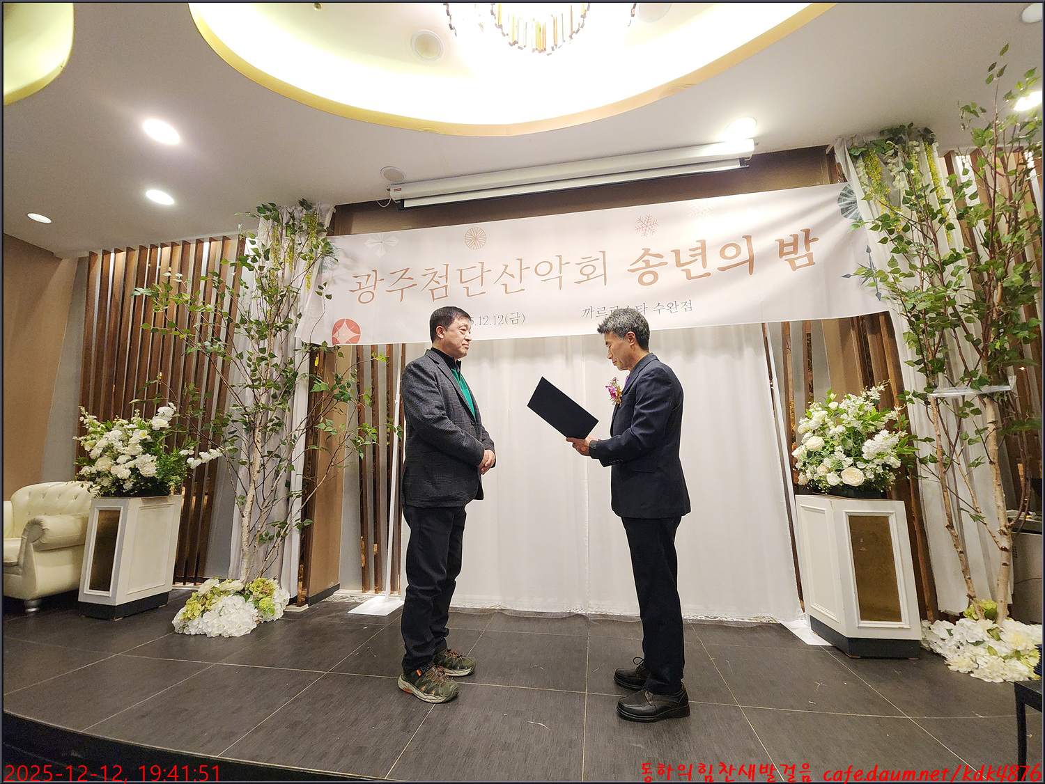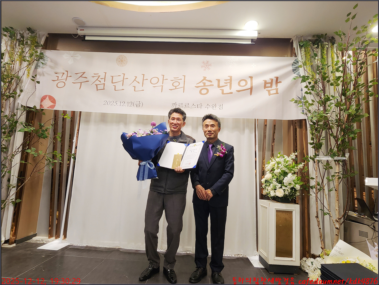 | 251212_광주첨단산악회 2025년도 송년회(송년의 밤) 및 회장 이취임식 & 임명장 및 표창장_첨단산악회 (1) | 2025.12.13 |