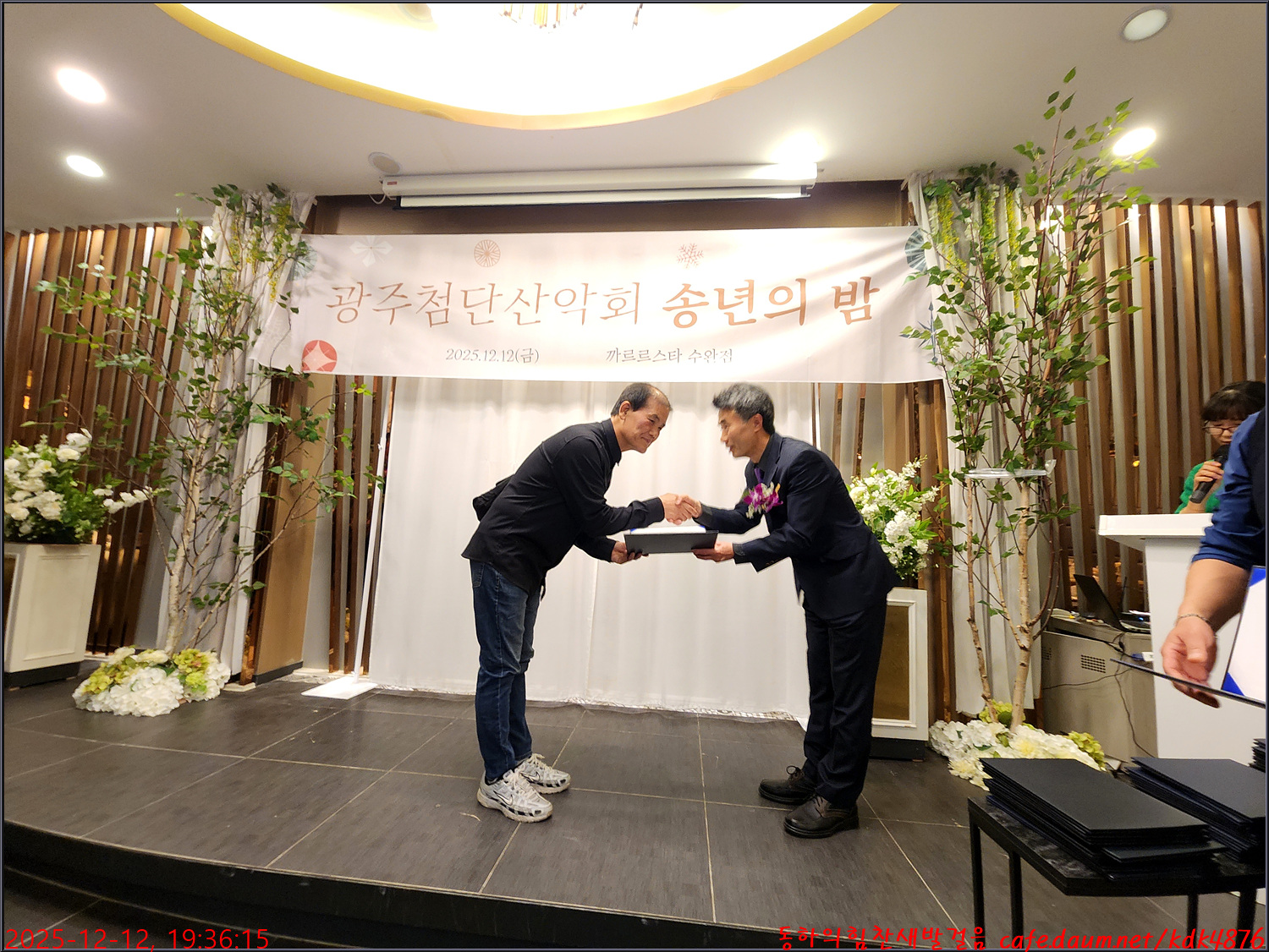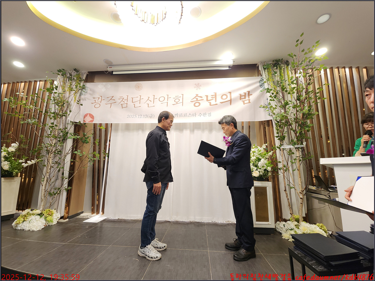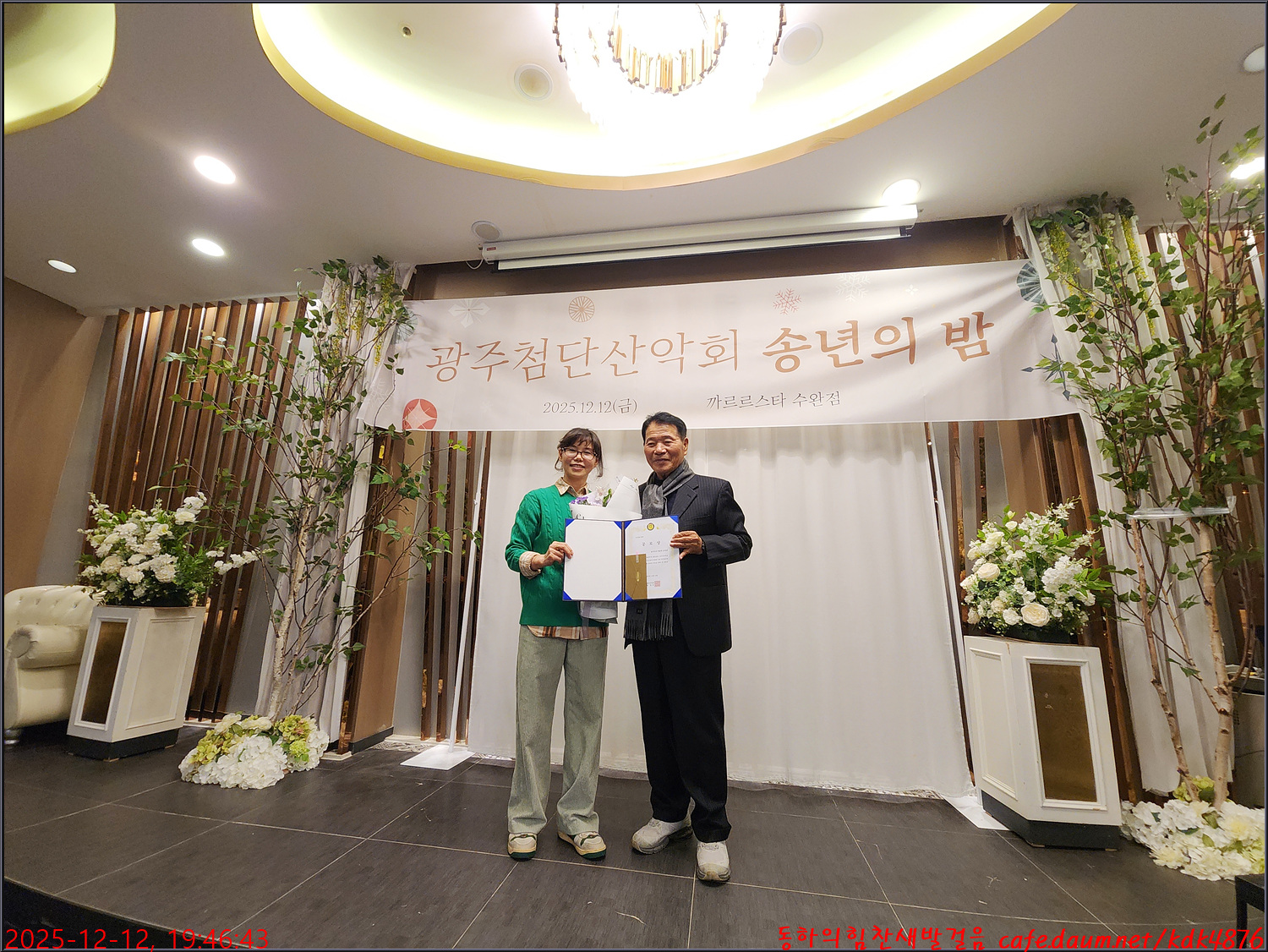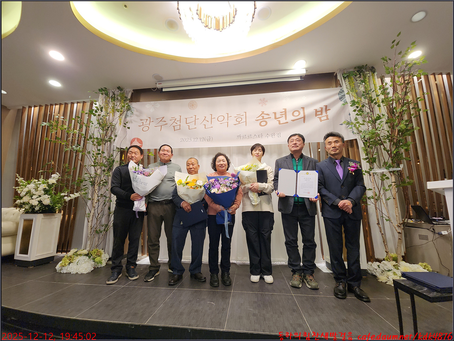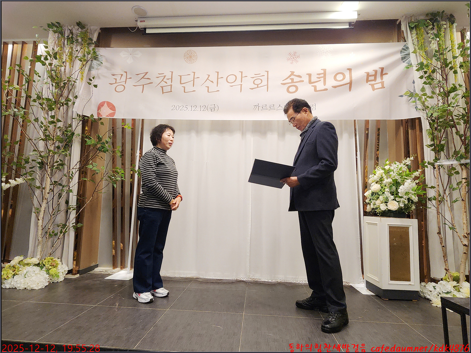 | 251212_광주첨단산악회 2025년도 송년회(송년의 밤) 및 회장 이취임식 & 임명장 및 표창장_첨단산악회 (1) | 2025.12.13 |