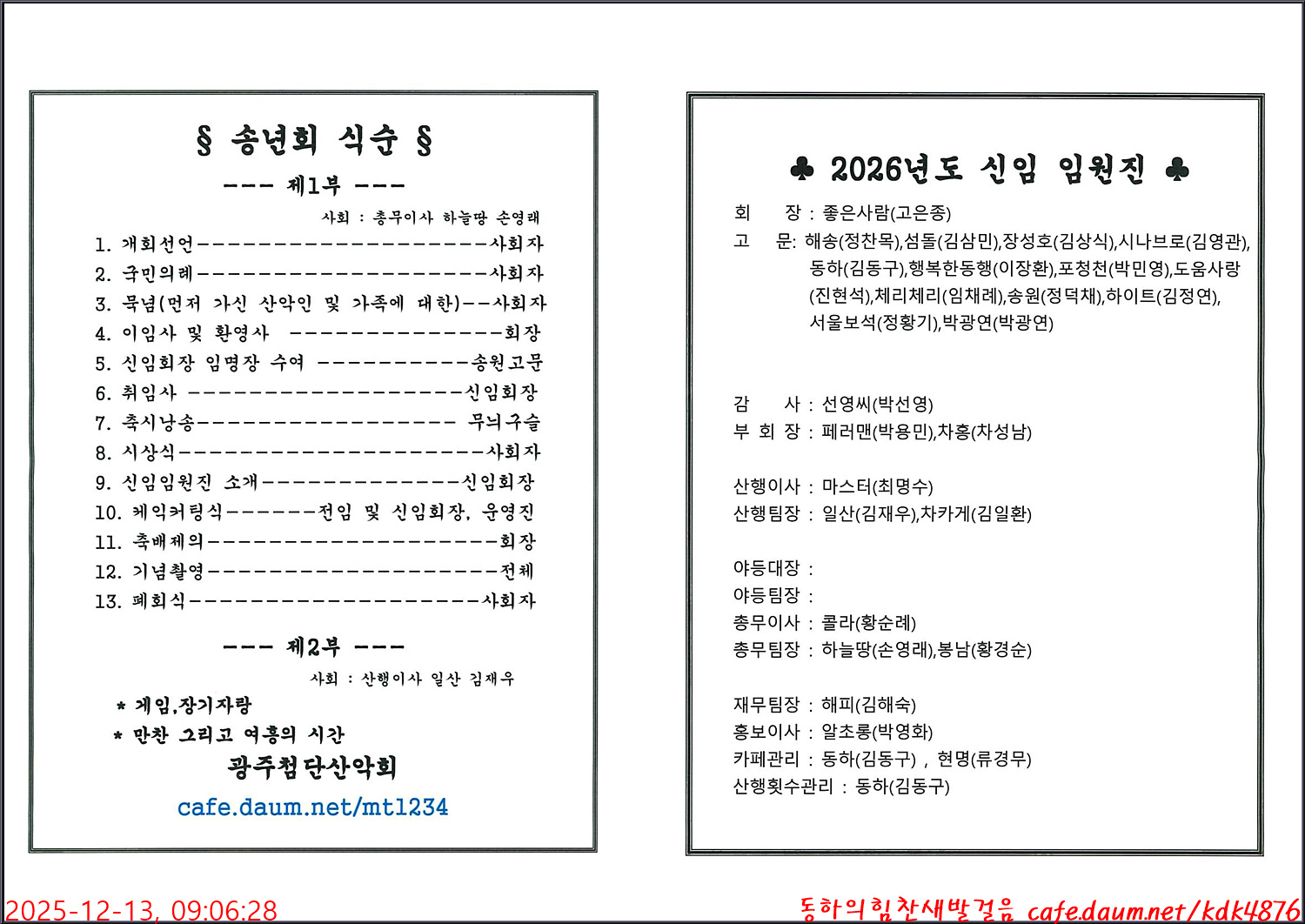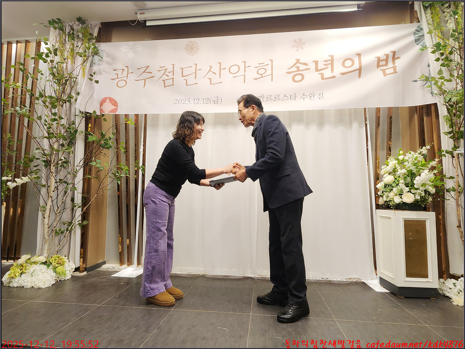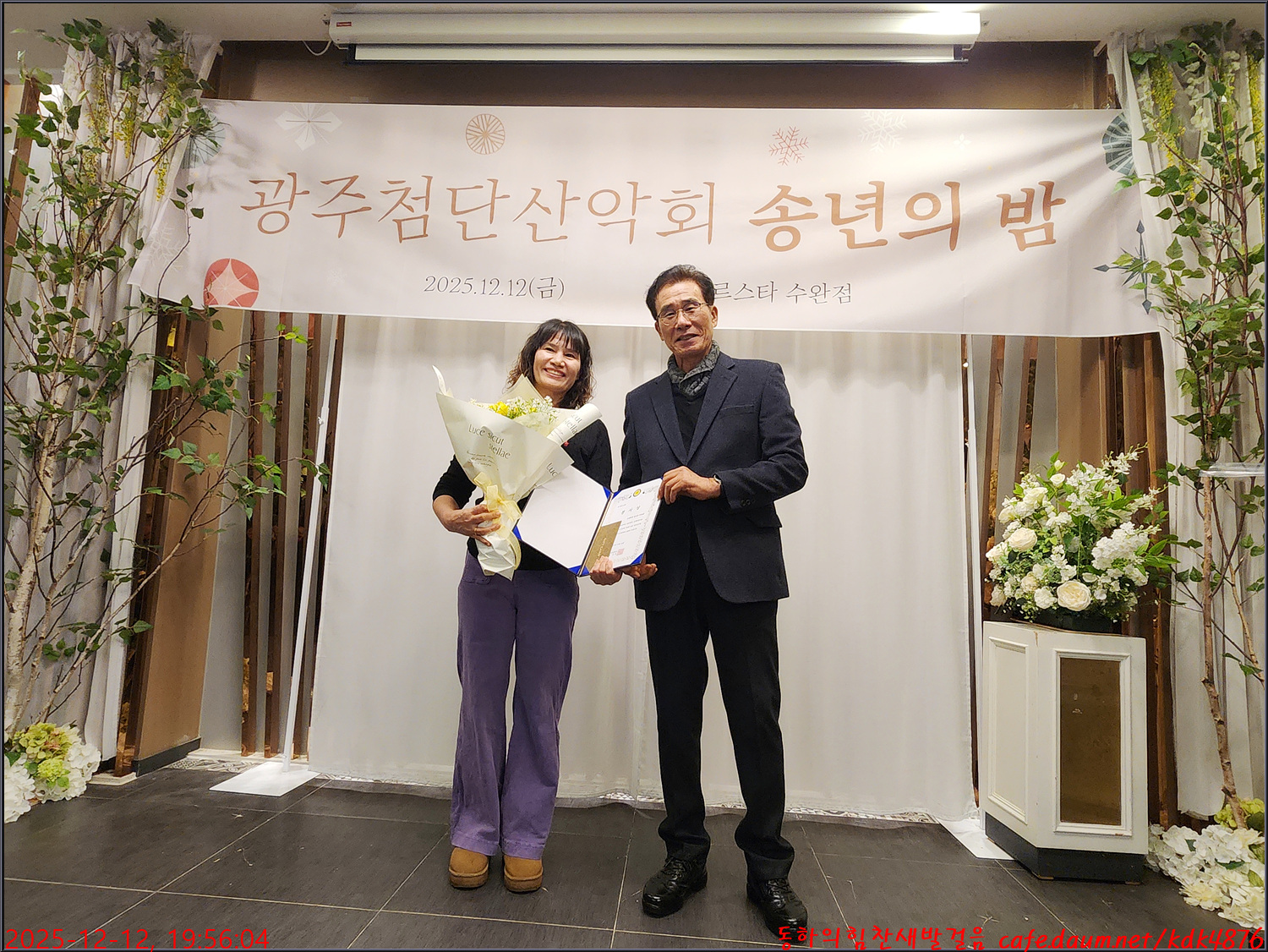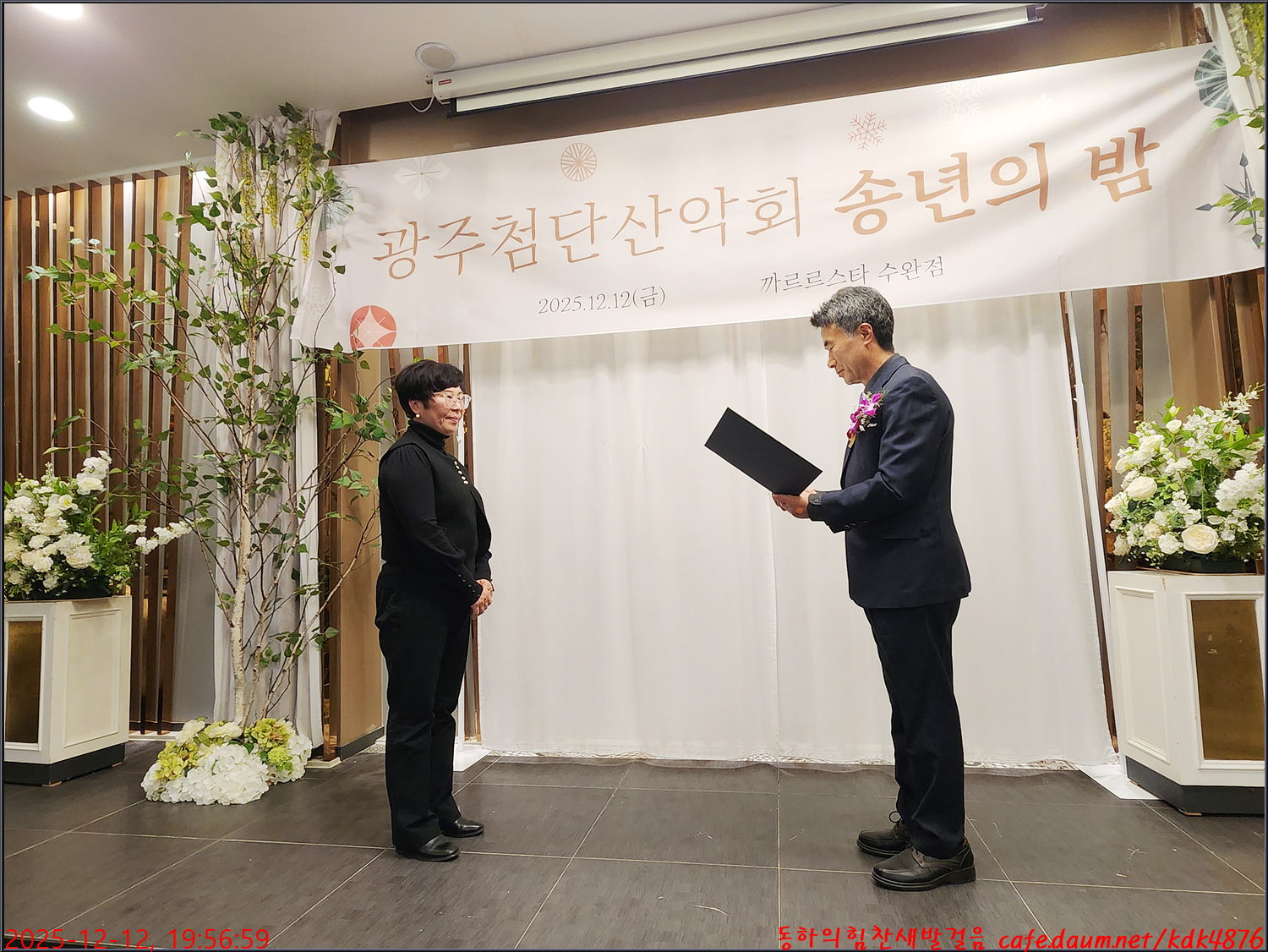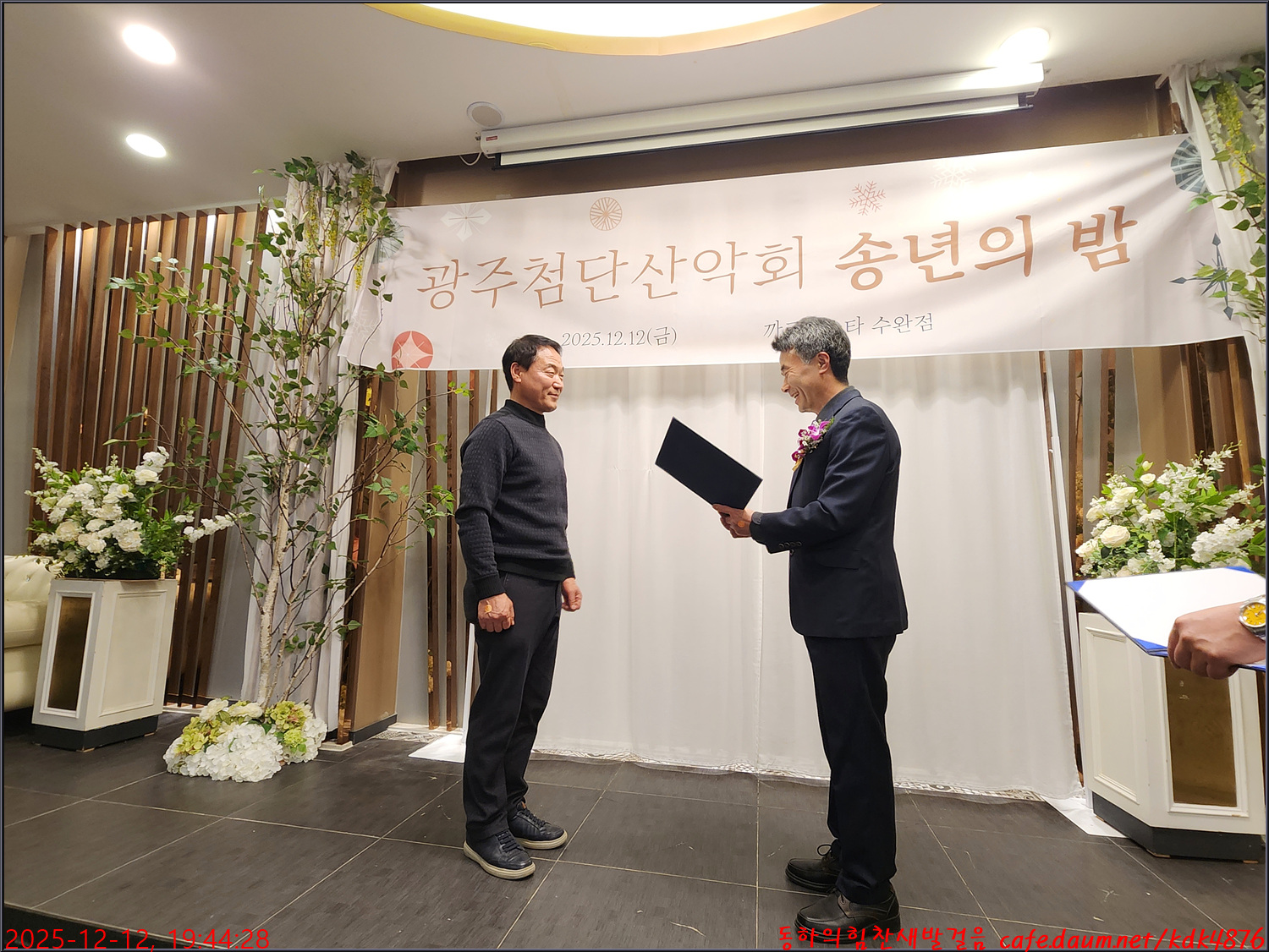 | 251212_광주첨단산악회 2025년도 송년회(송년의 밤) 및 회장 이취임식 & 임명장 및 표창장_첨단산악회 (1) | 2025.12.13 |