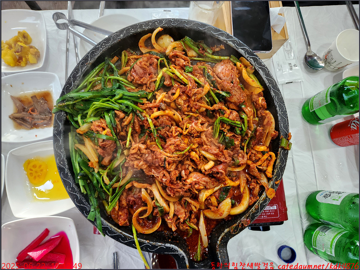 오리불고기를 먹음직스럽게 구워 소주 한 잔 곁들이며 얼풋한 뒤풀이 식사가 되어지고,
