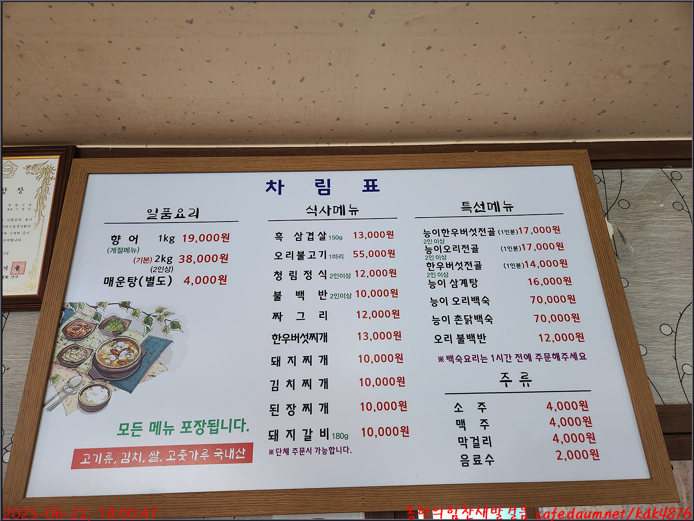 오늘의 메뉴는 오리불고기 1마리 55,000원